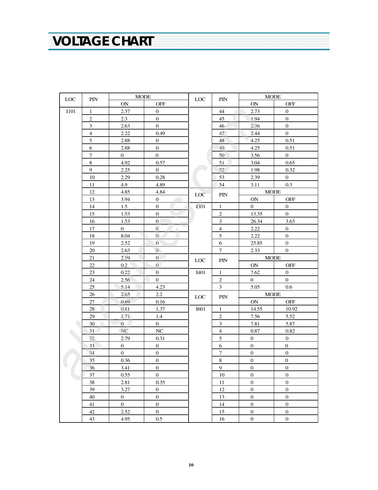 VOLTAGE CHART