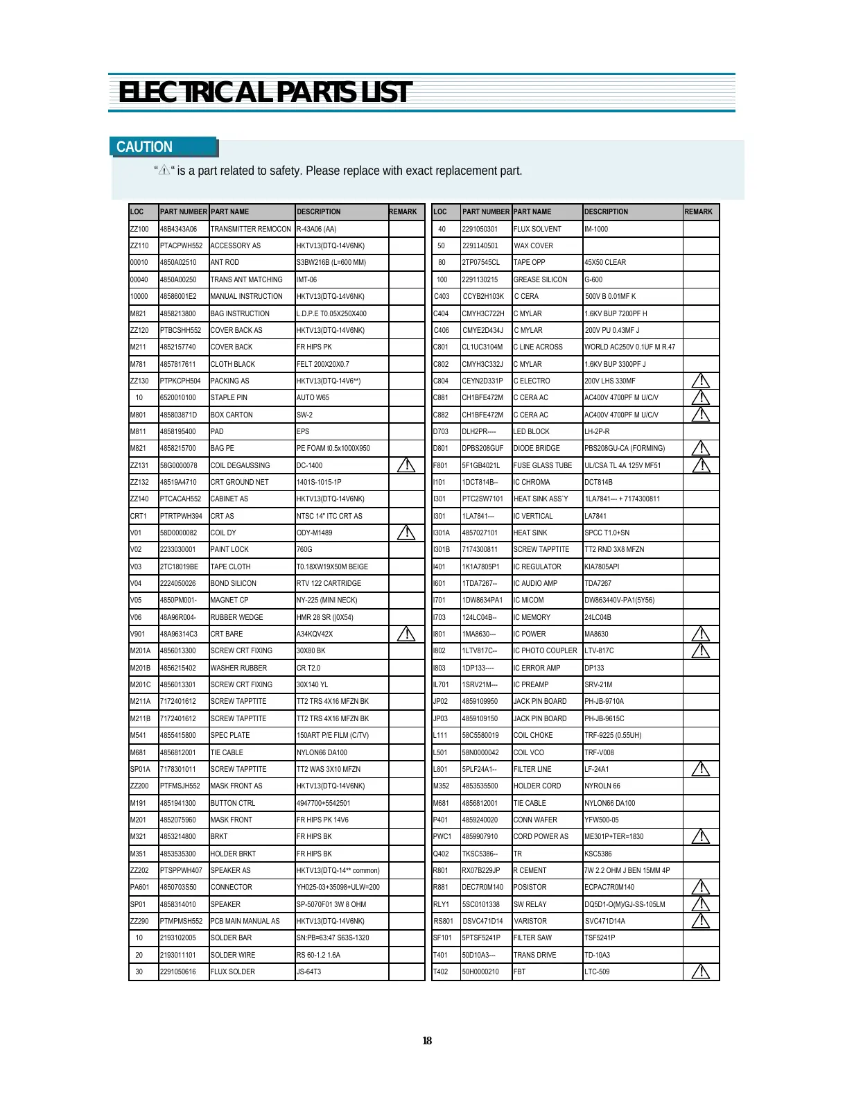 LOC PART NUMBER PART NAME DESCRIPTION REMARK LOC PART NUMBER PART NAME DESCRIPTION REMARK