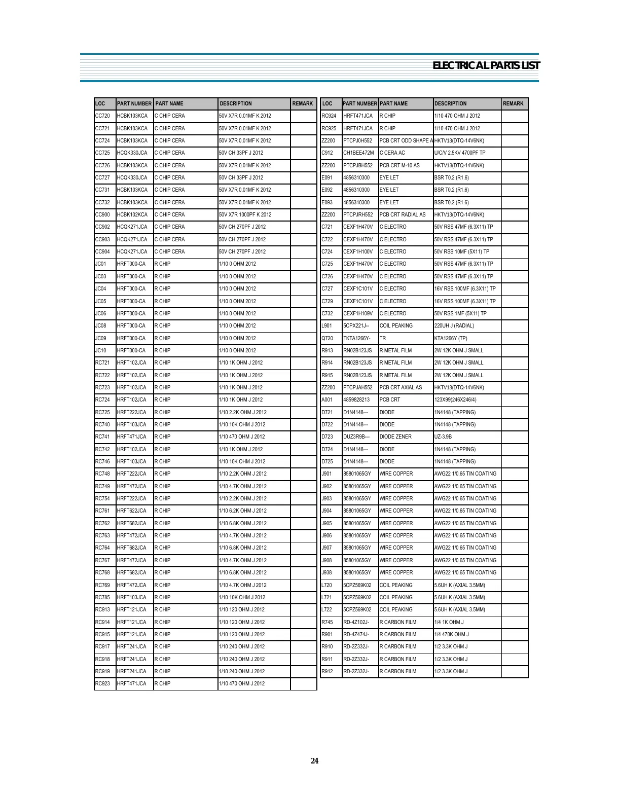 RC723 HRFT102JCA R CHIP 1/10 1K OHM J 2012 ZZ200 PTCPJAH552 PCB CRT AXIAL AS HKTV13(DTQ-14V6NK)