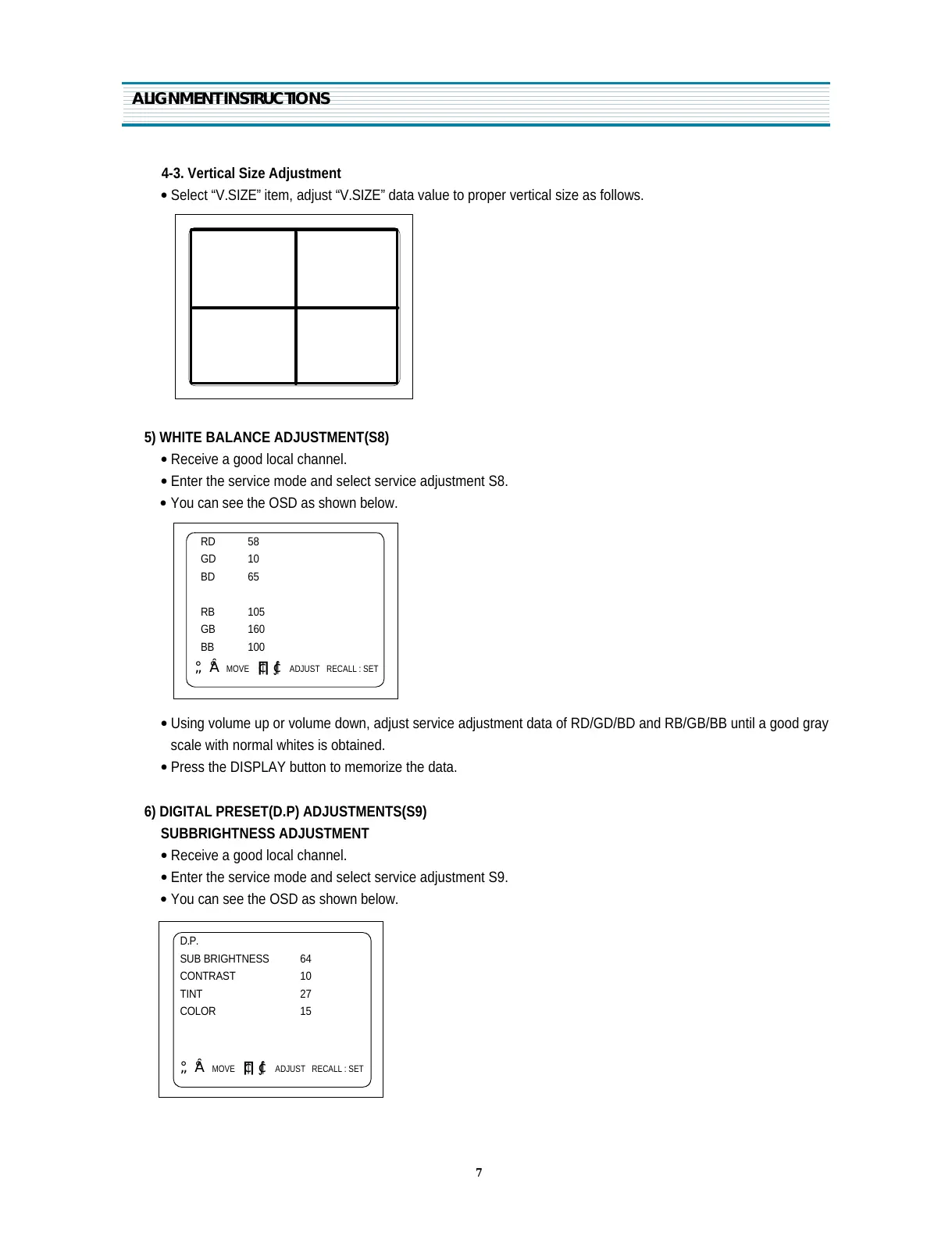 Select “V.SIZE” item, adjust “V.SIZE” data value to proper vertical size as follows.