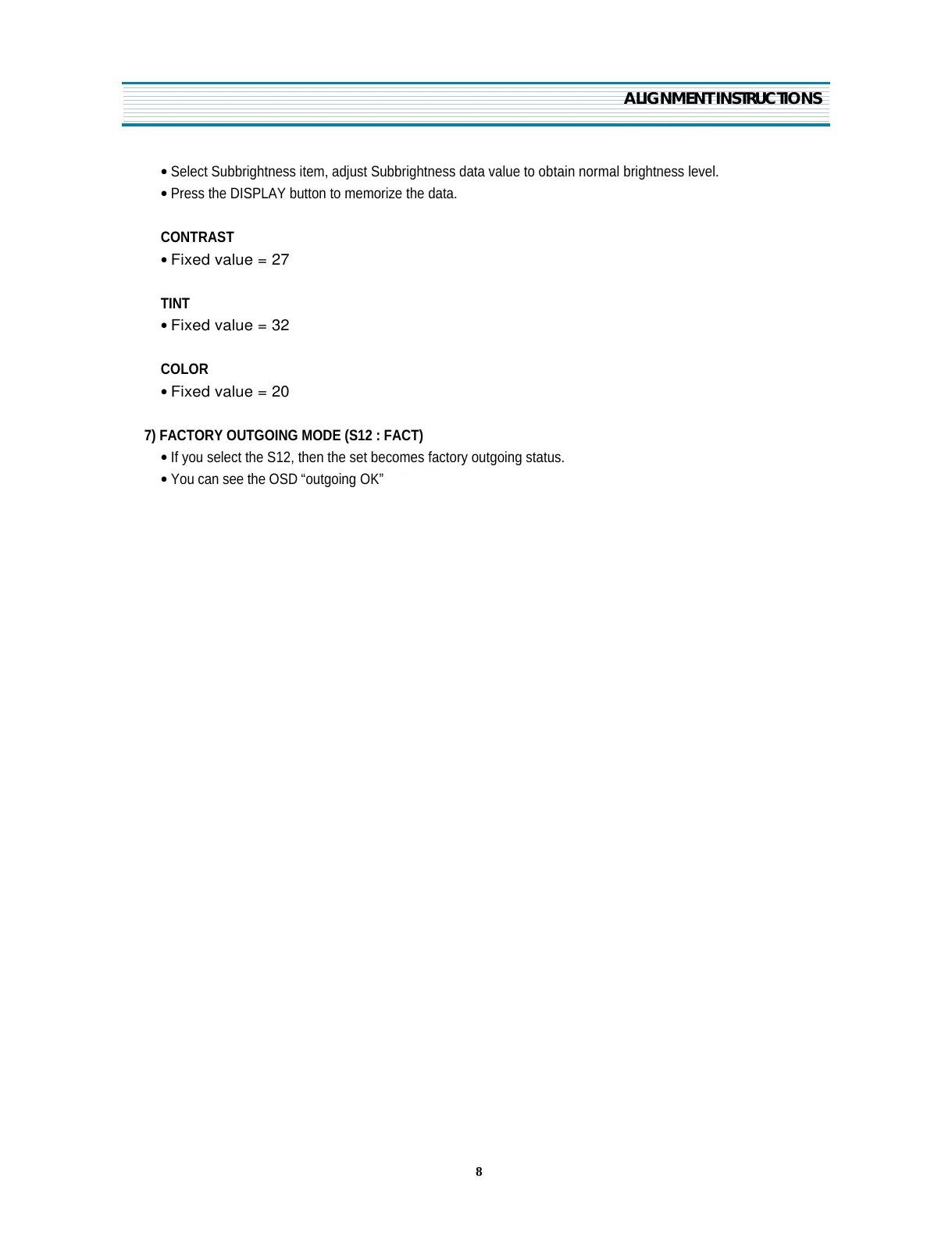 7) FACTORY OUTGOING MODE (S12 : FACT)