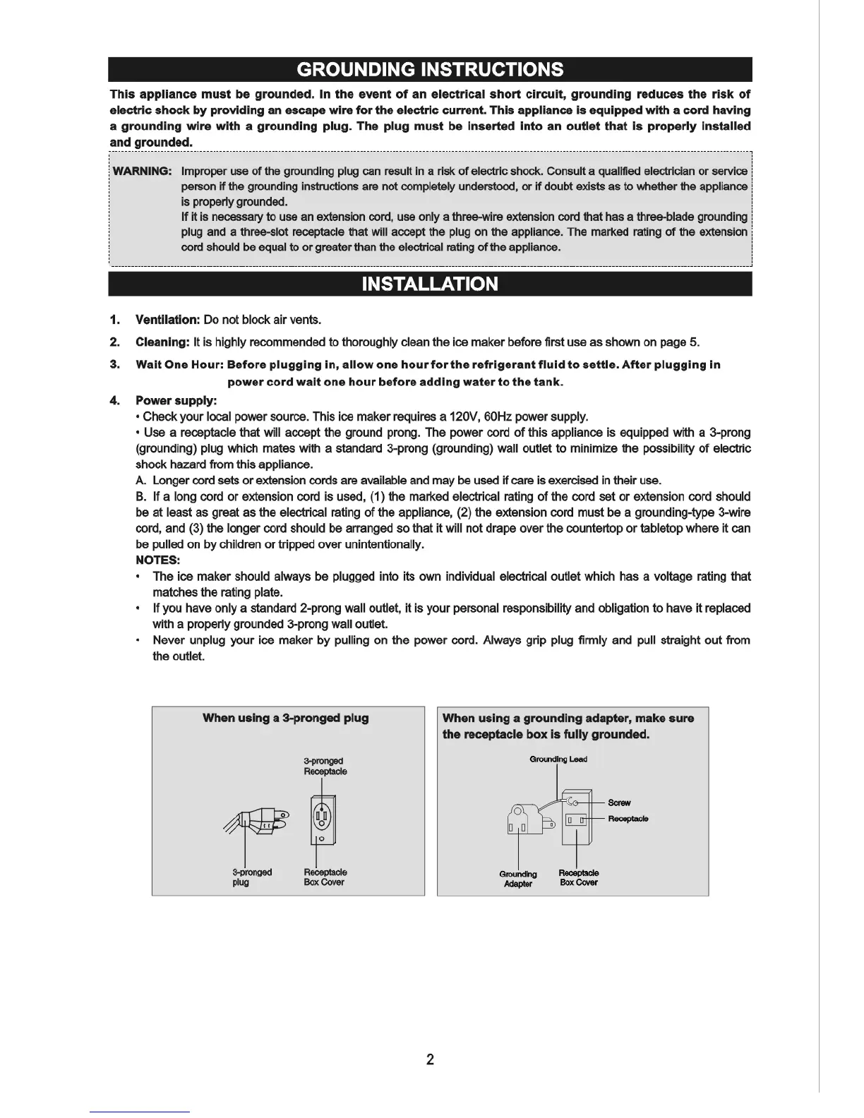Emerson IM90 - Grounding Instructions; Installation; Ventilation; Cleaning