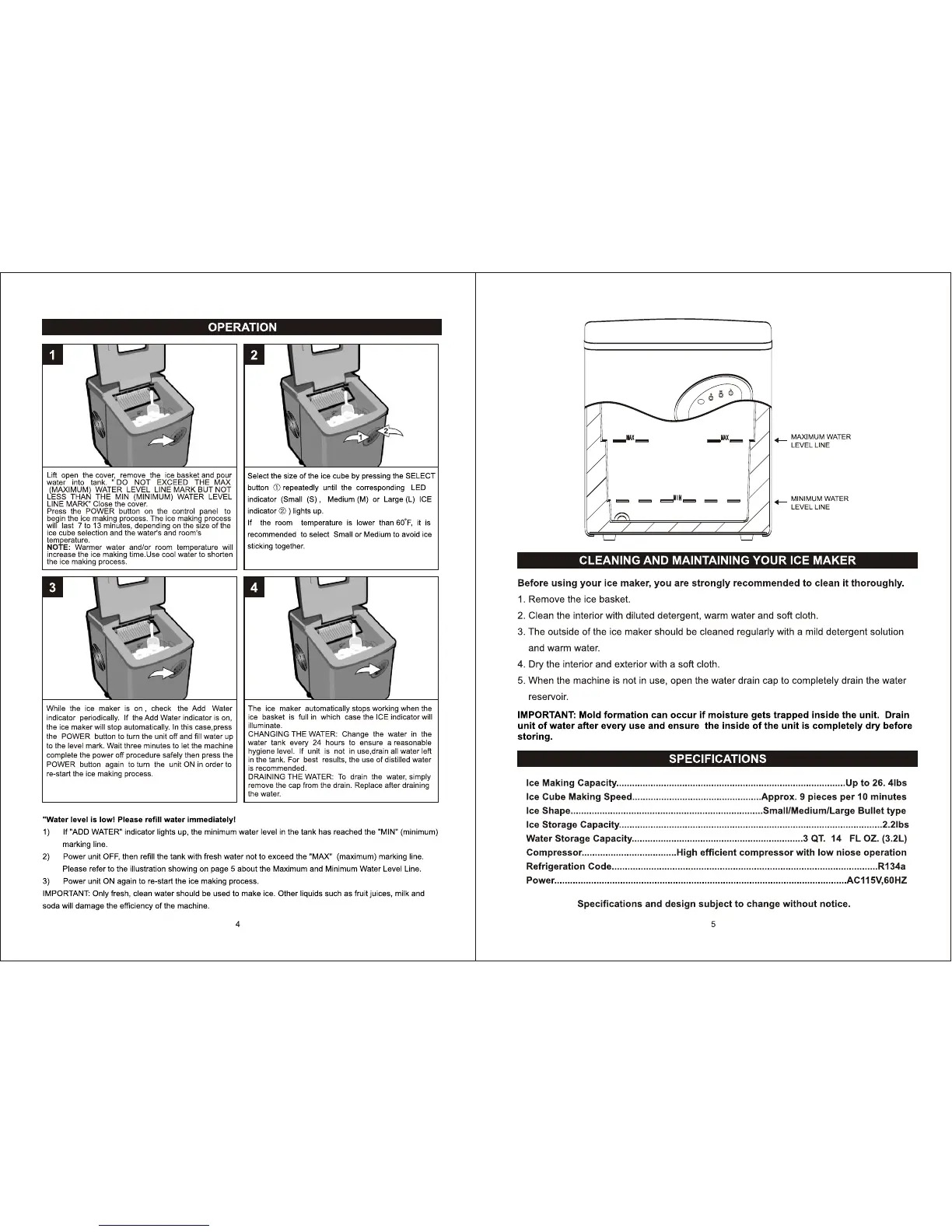 Emerson IM90T - OPERATION; Ice Making Process; Water Management; CLEANING AND MAINTAINING YOUR ICE MAKER