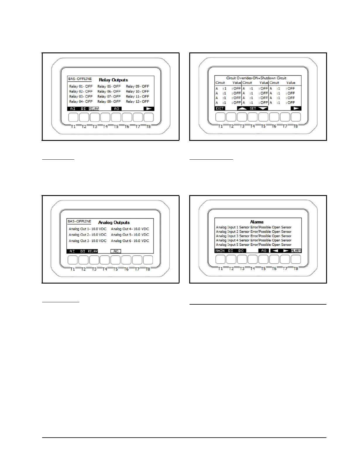 Press the T5 key to access the analog output status screen.