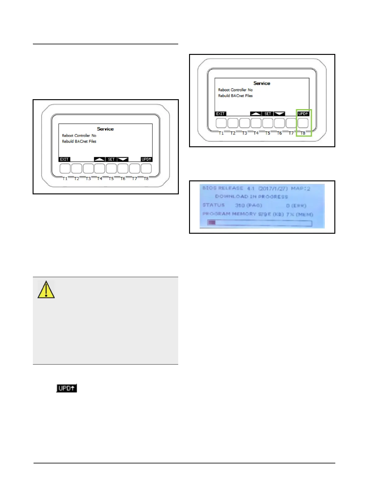 1. From the Service Menu, press and hold the T8