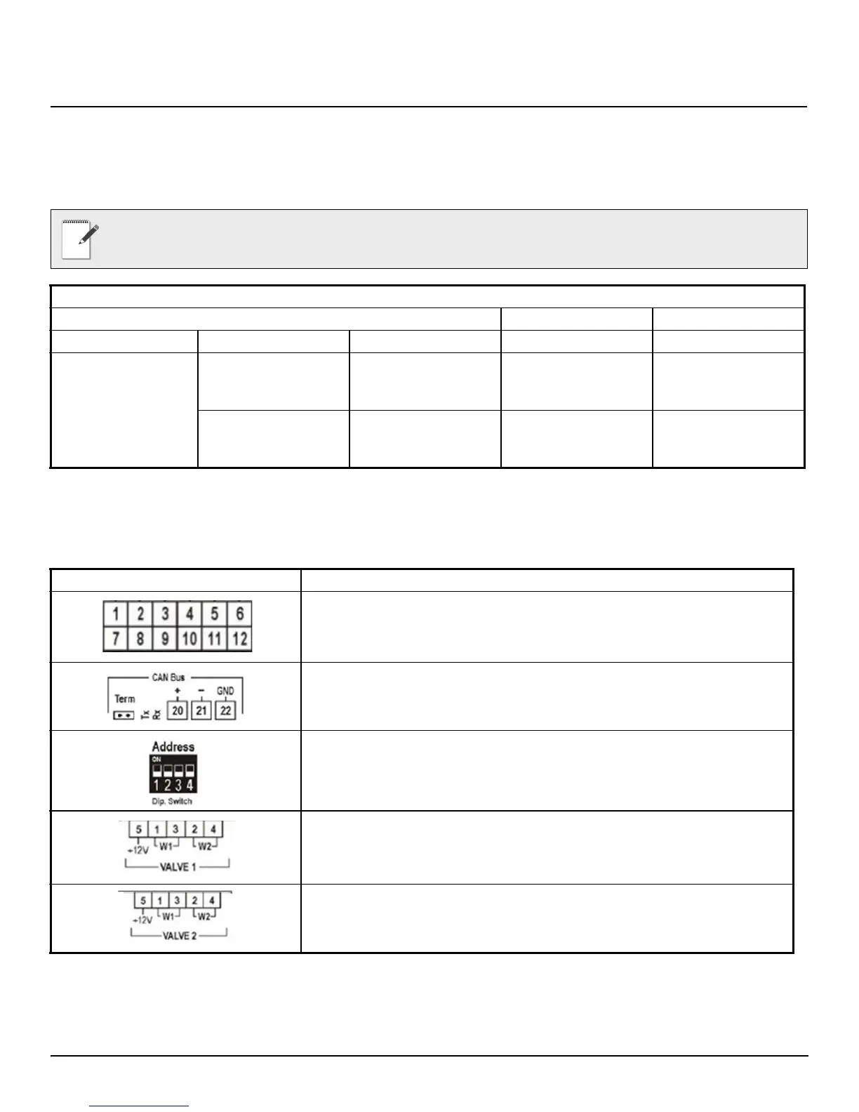 Connections to valve 1 (W1/W2) Additional power (+12VDC)