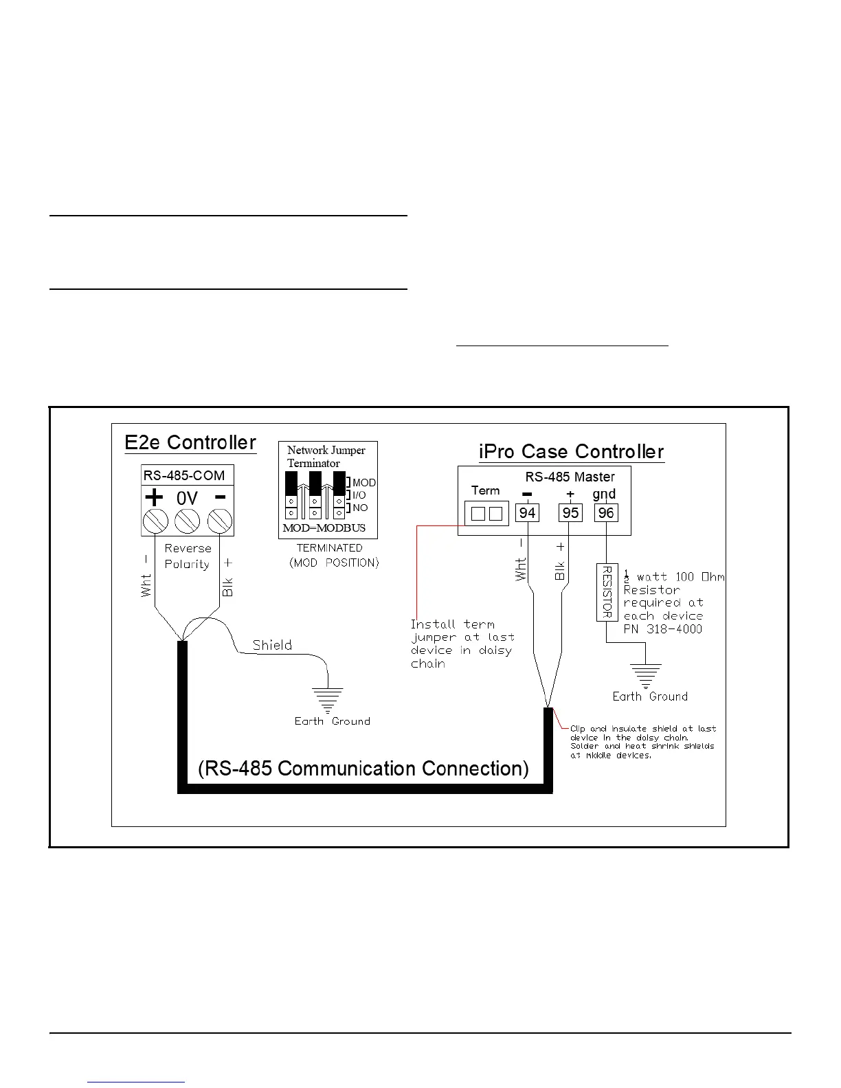 on the RS485 cable between the E2E and the iPro Case Controller.