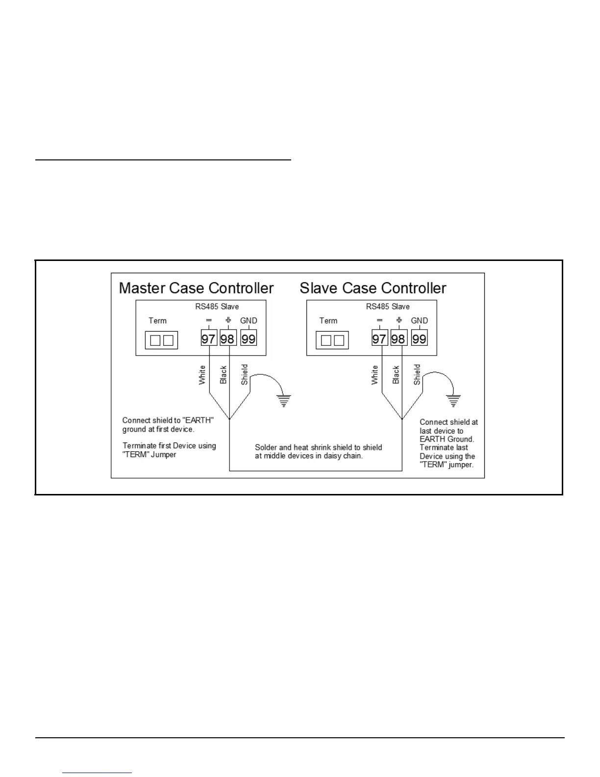 from the master case controllers RS485 slave port to each slave case controllers RS485 slave port. See Figure 13-1 for connection detail: