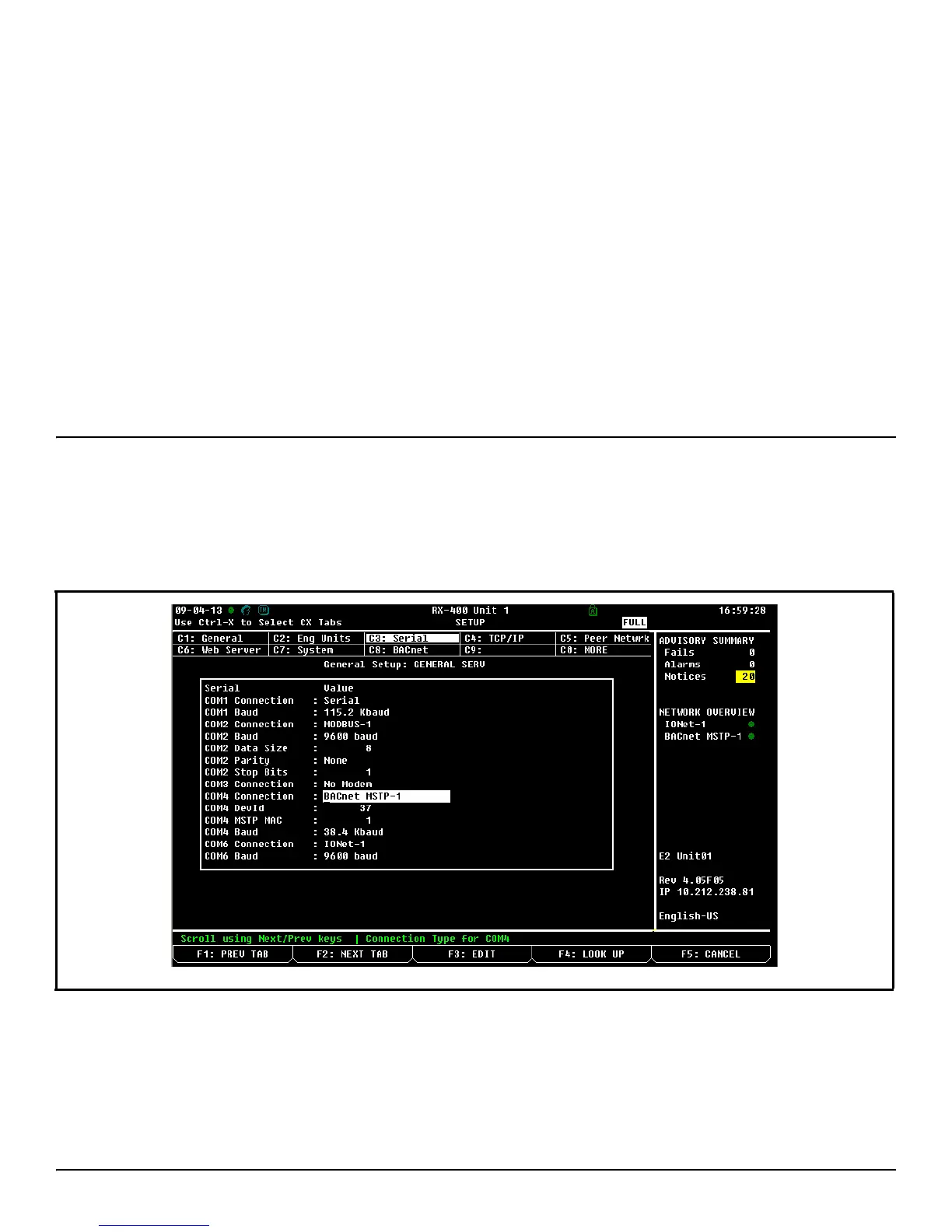 Communication between E2E and the case controller takes place over the RS485 BACnet MS/TP network. Follow the instructions in