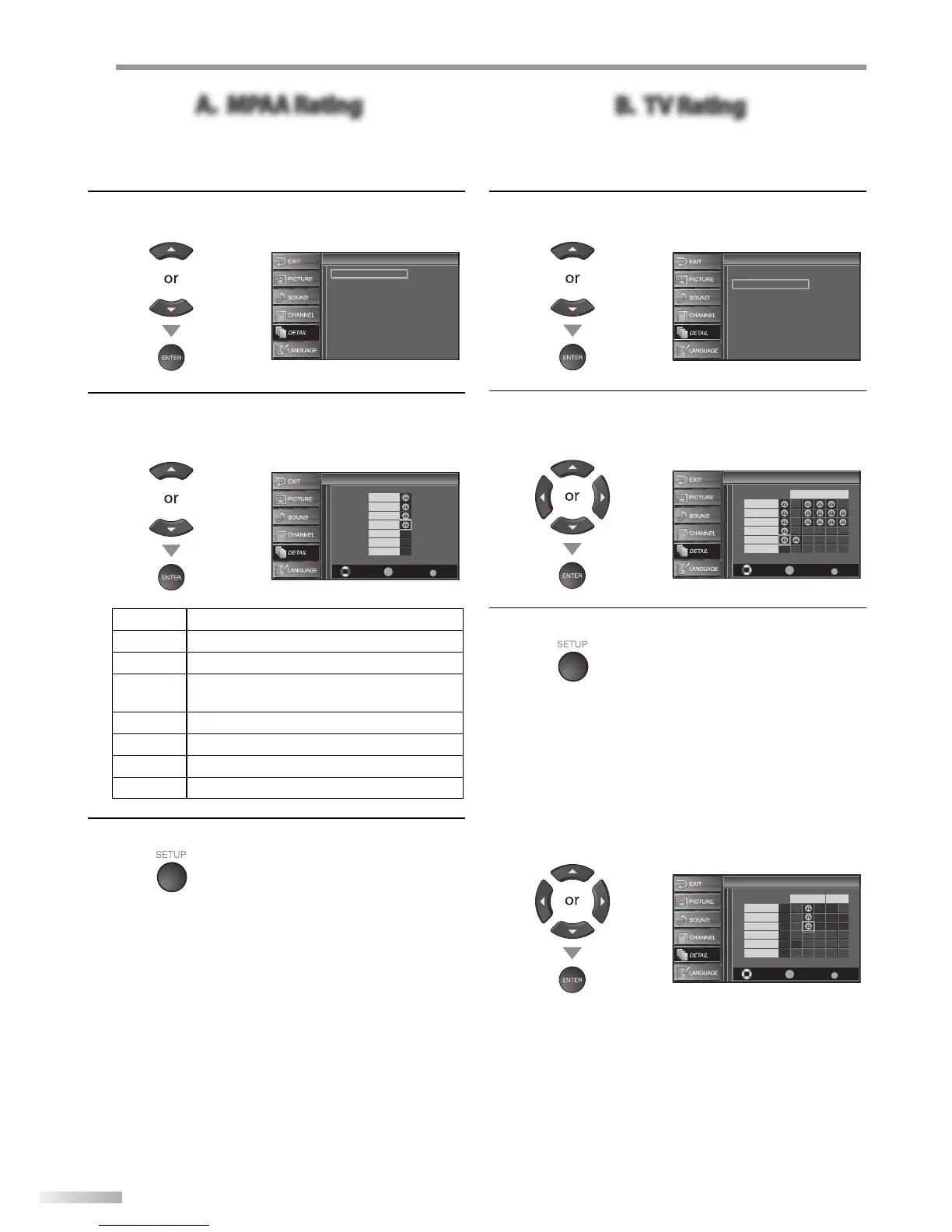L] to select “TV Rating”, then press