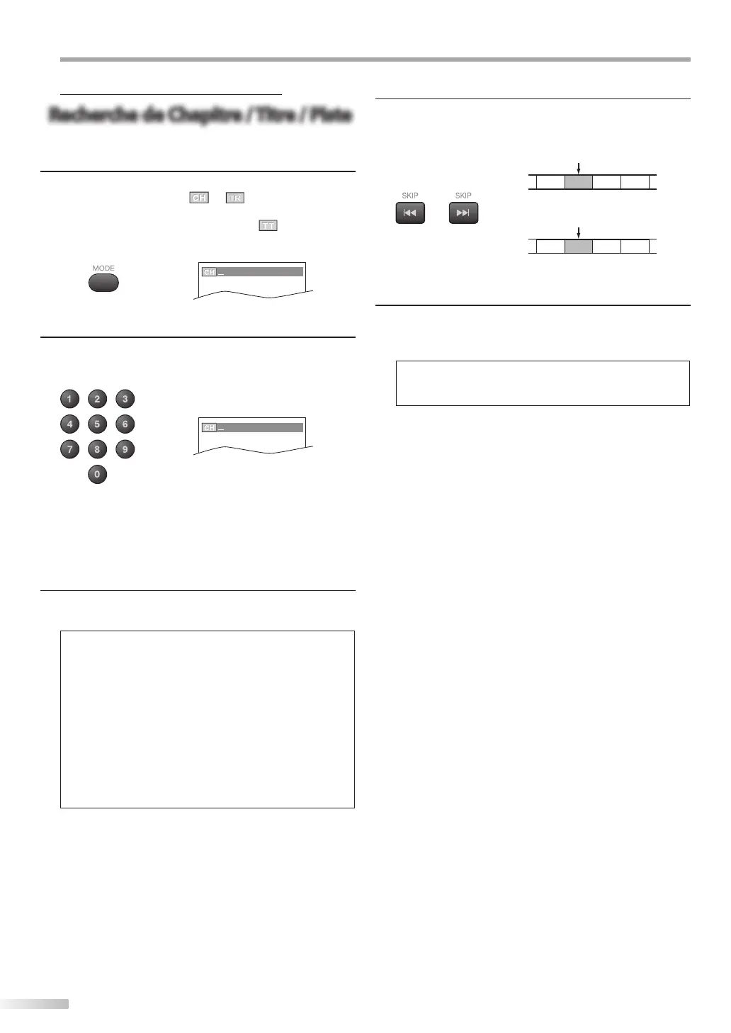 • [SKIP H / G] ne sont pas disponibles lorsque la lecture