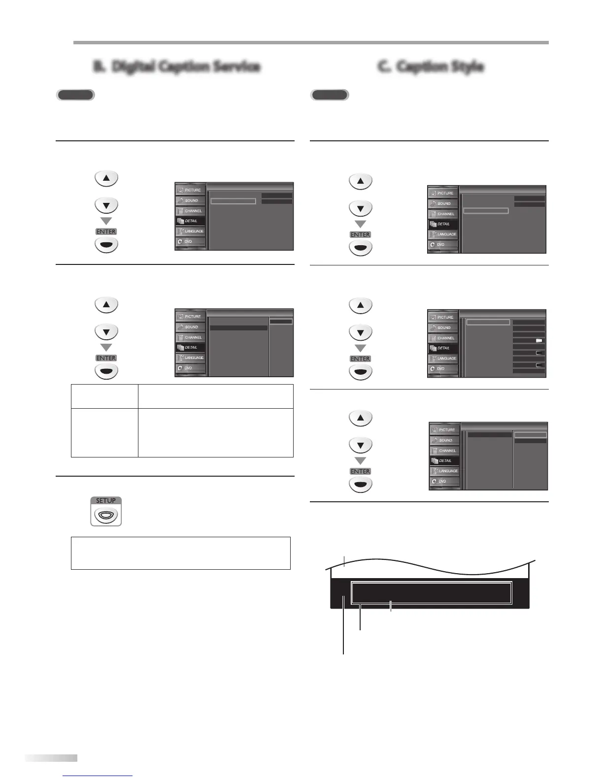 own closed caption called digital caption service. Use this menu to change