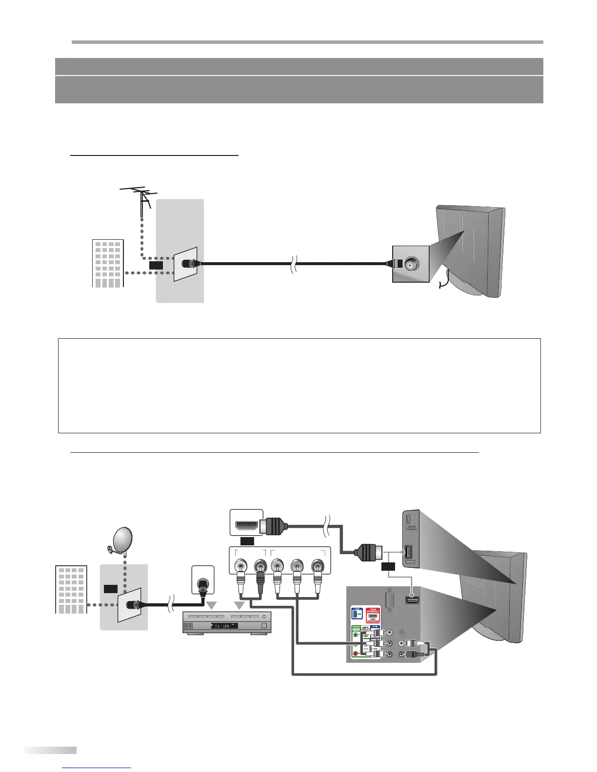 numérique (DTV). Les antennes installées à l’extérieur ou au grenier sont plus efficaces que les antennes posées sur le téléviseur.