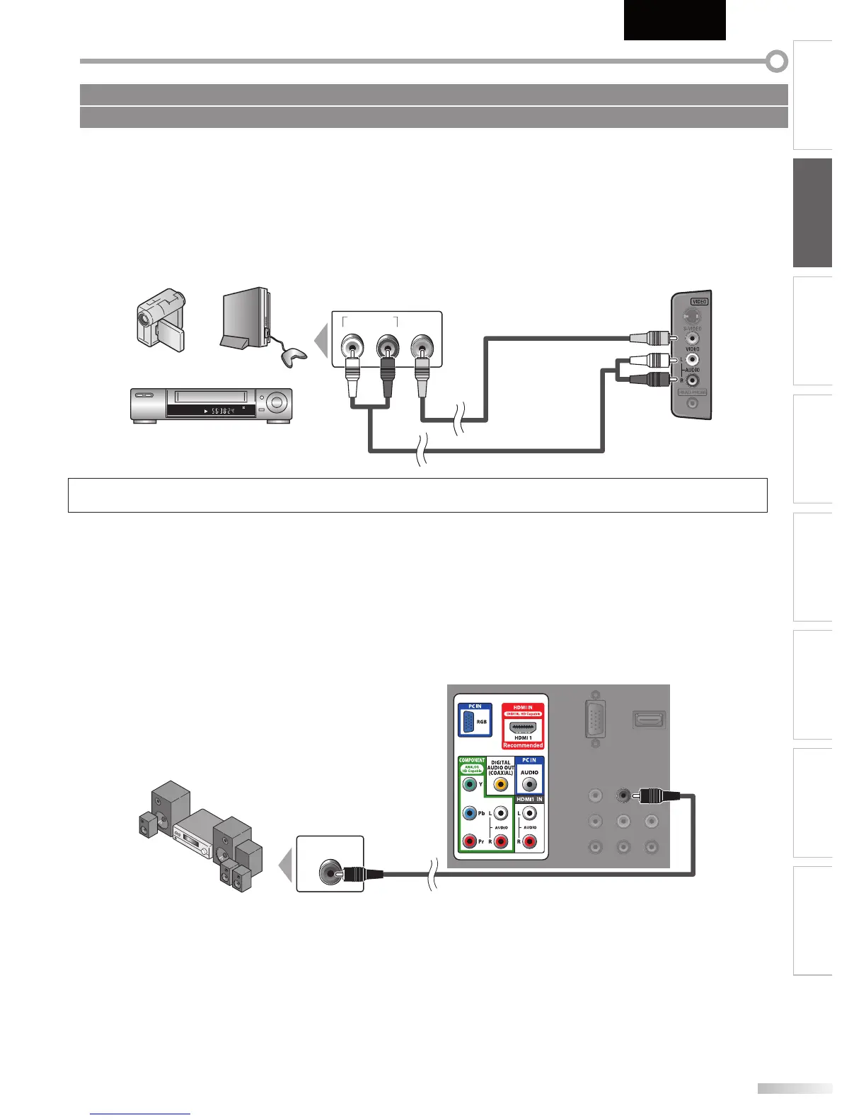 Si la prise audio de l’appareil vidéo est monaurale, connectez le câble audio RCA à la prise d’entrée audio L (gauche).