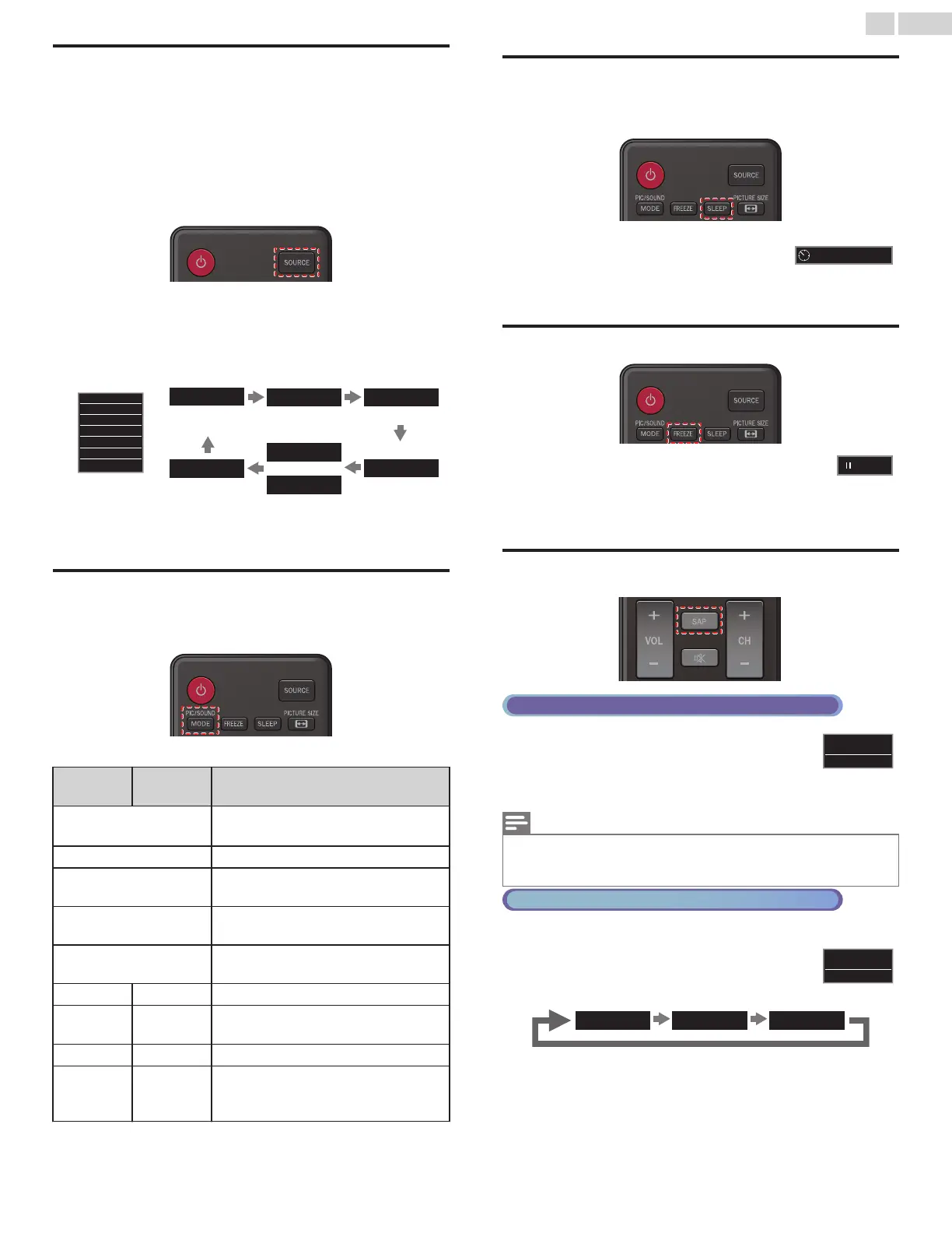 Press SAP to display the currently selected Audio mode.