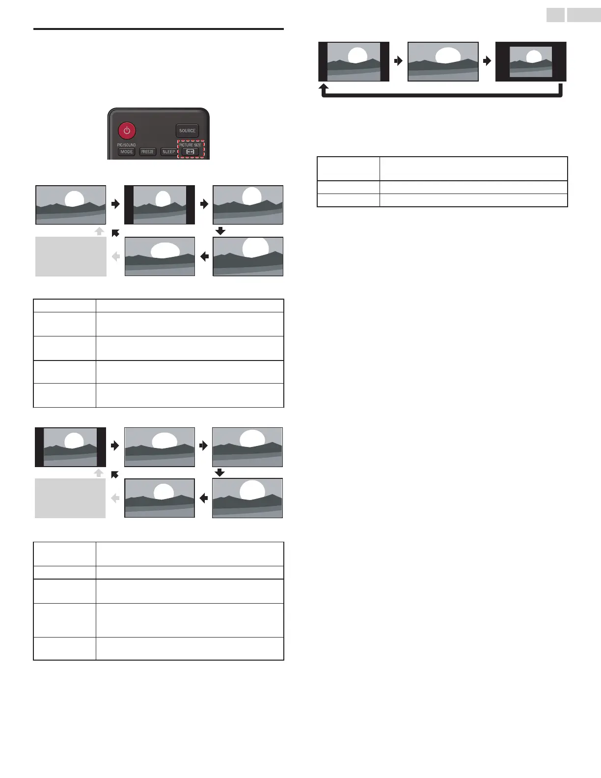Press PICTURE SIZE A Repeatedly to Switch the TV Aspect Ratio.
