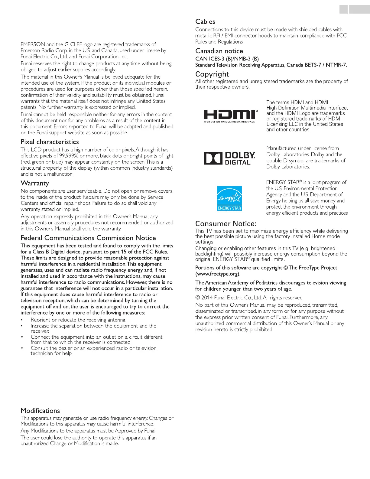 © 2014 Funai Electric Co., Ltd. All rights reserved.