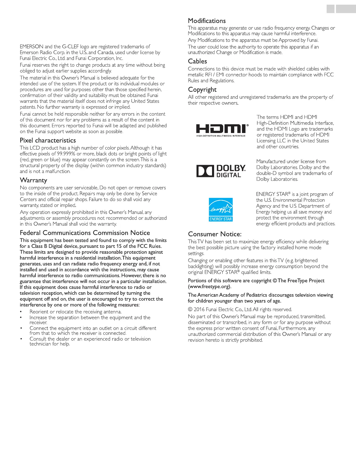 © 2016 Funai Electric Co., Ltd. All rights reserved.