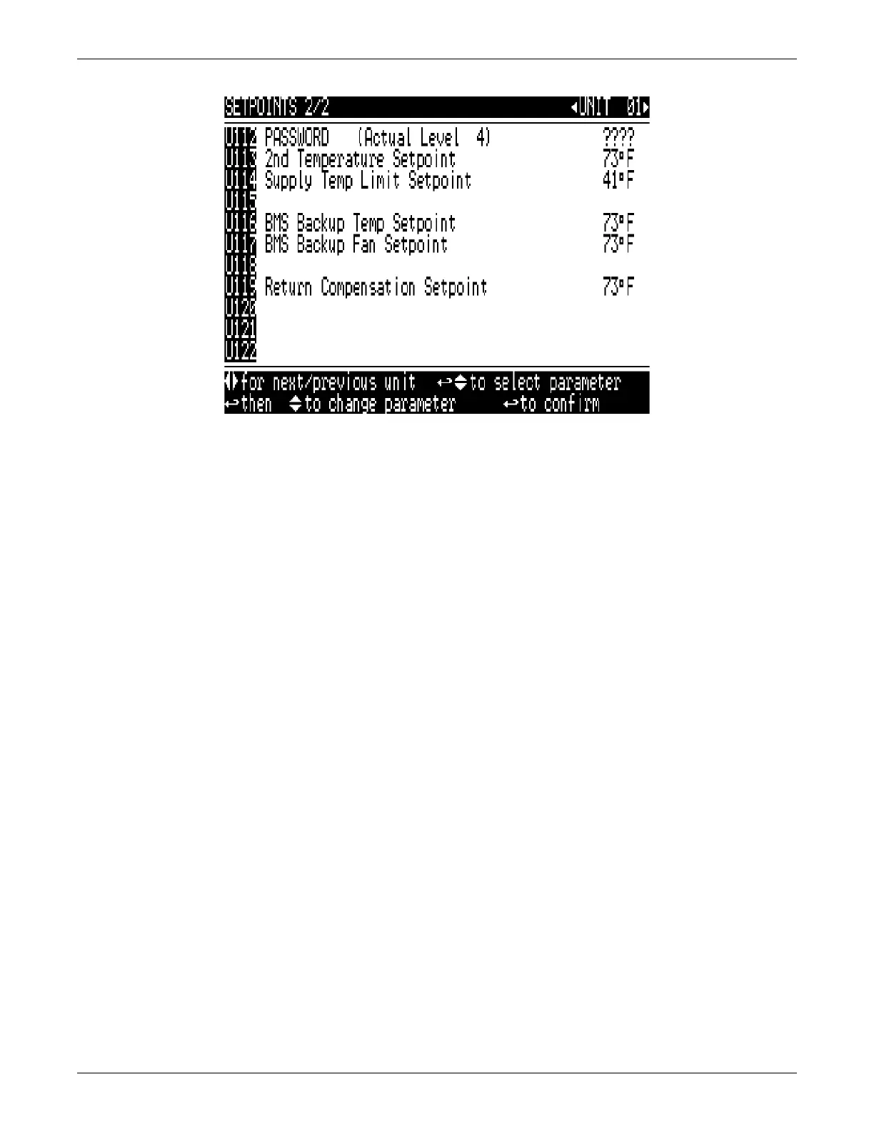 Setpoints menu prior to setting a supply limit setpoint. This parameter is adjustable from 41°F to