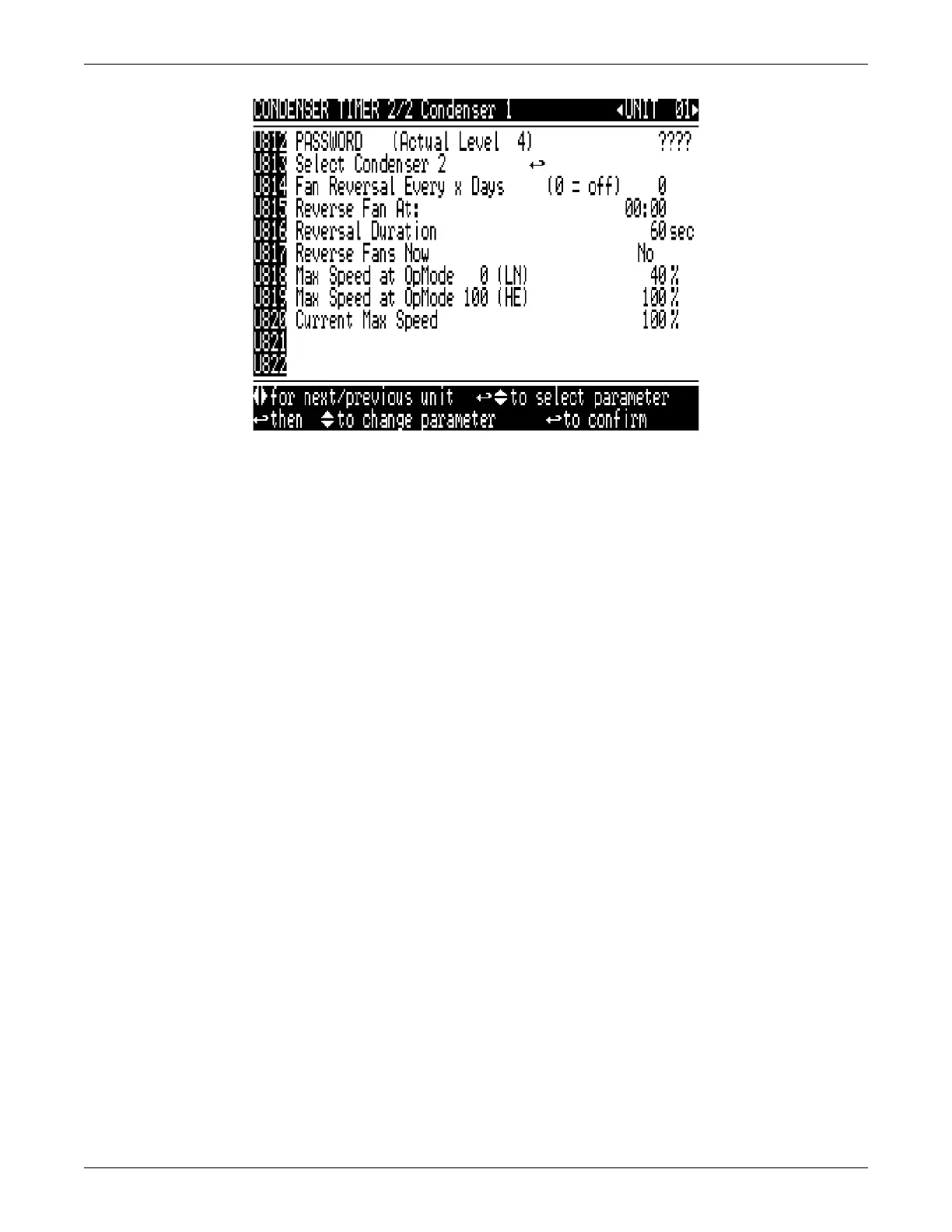 U813 Select Condenser 2—This menu selection toggles between condenser 1 and 2. When “Select