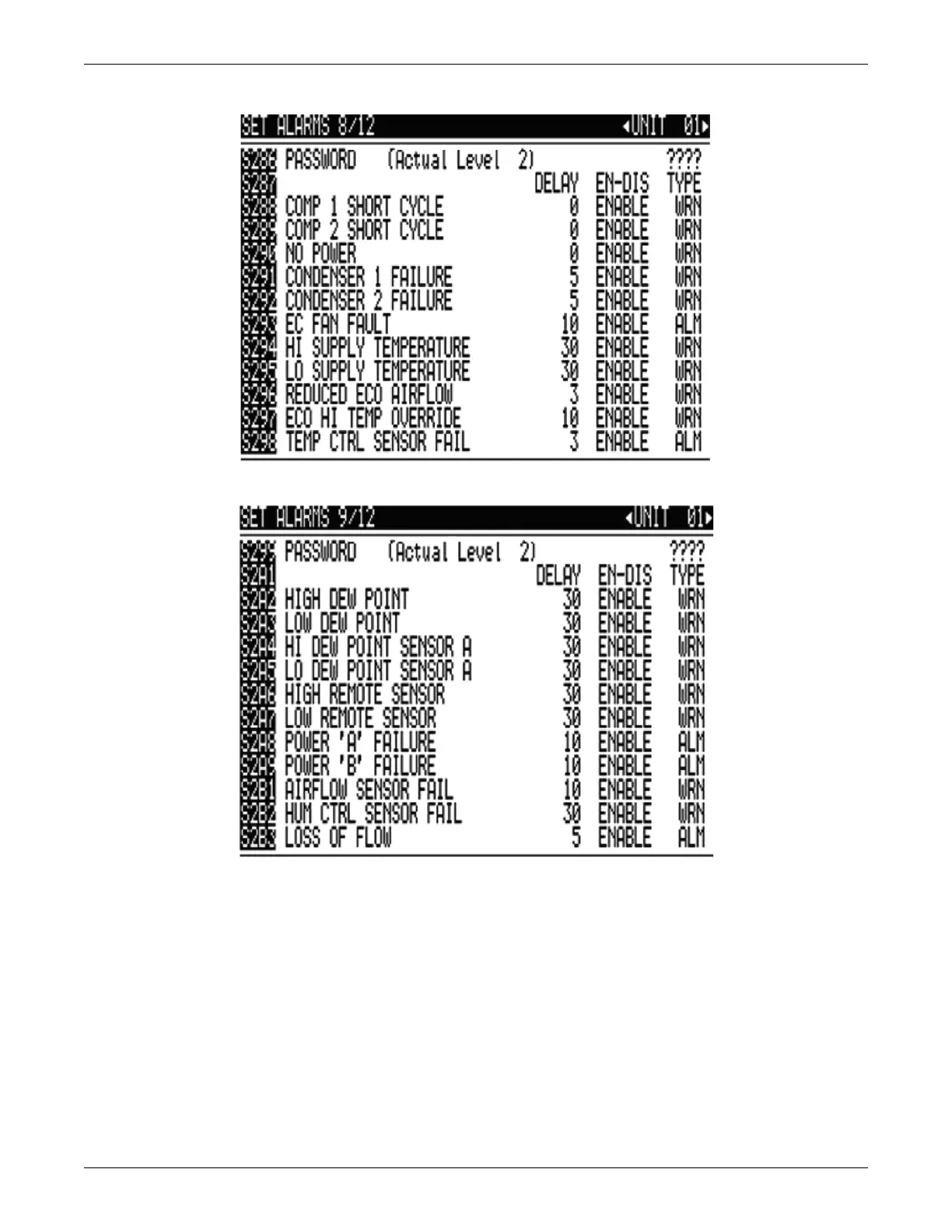 Emerson Liebert iCOM - Figure 116 Set Alarms Screen; Figure 117 Set Alarms Screen