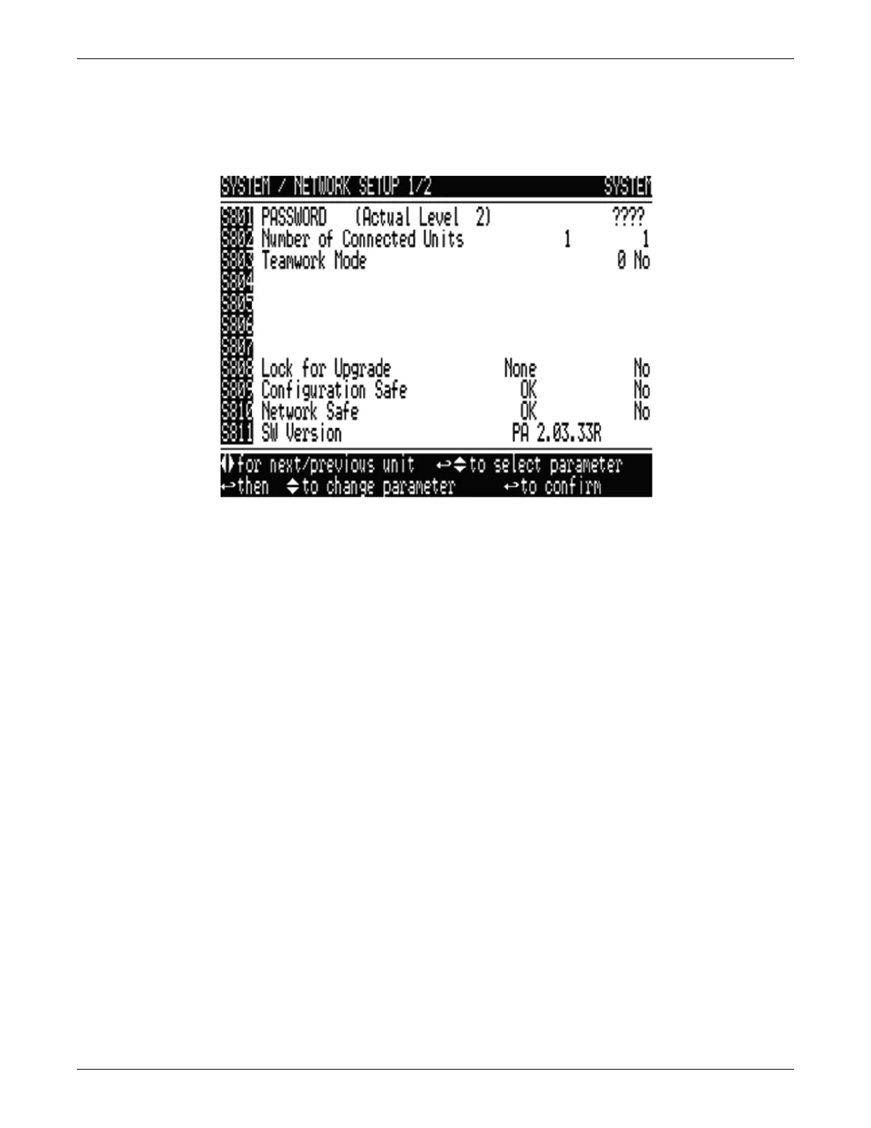 Figure 134 System/network setup screen—System, page 1 of 2 (large display only)
