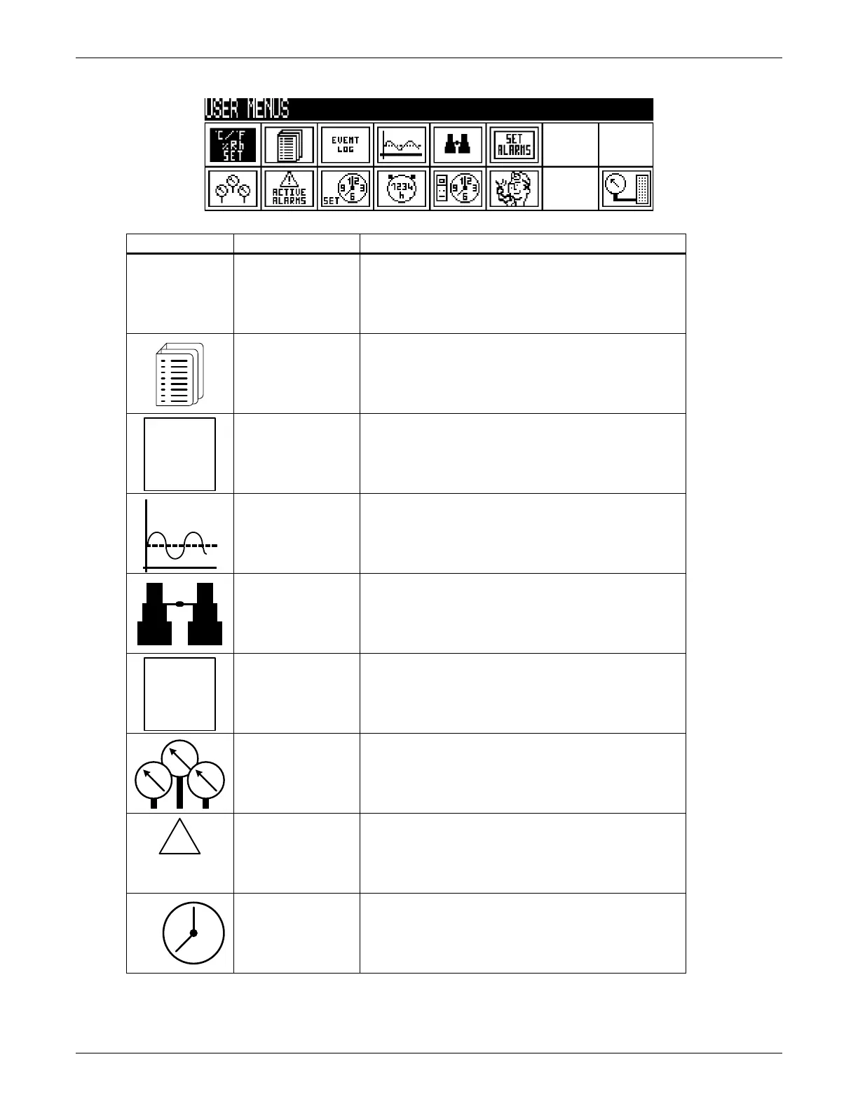 Table 3 User menu icons