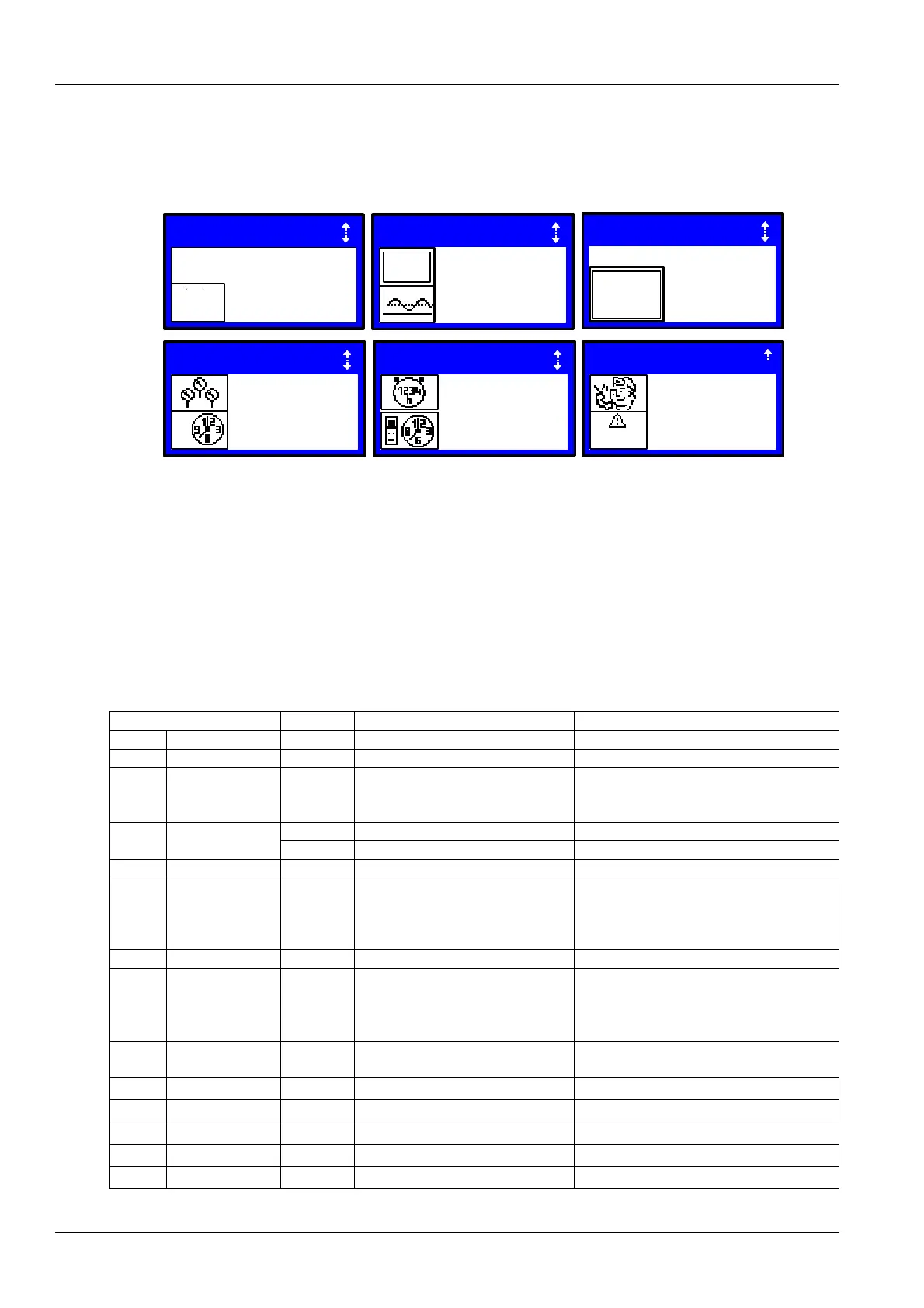 POINTS submenu through the USER MENUS. The left row displays the parameter codes; the middle row, the