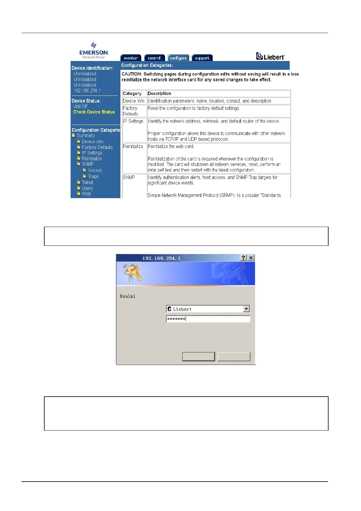 and the password ‘Liebert’, and click OK to enter the configuration interface.