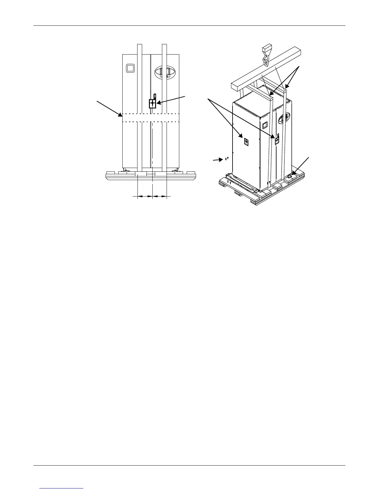 1. Elevate the Liebert XDP with a lifting mechanism, such as a forklift or rigging.