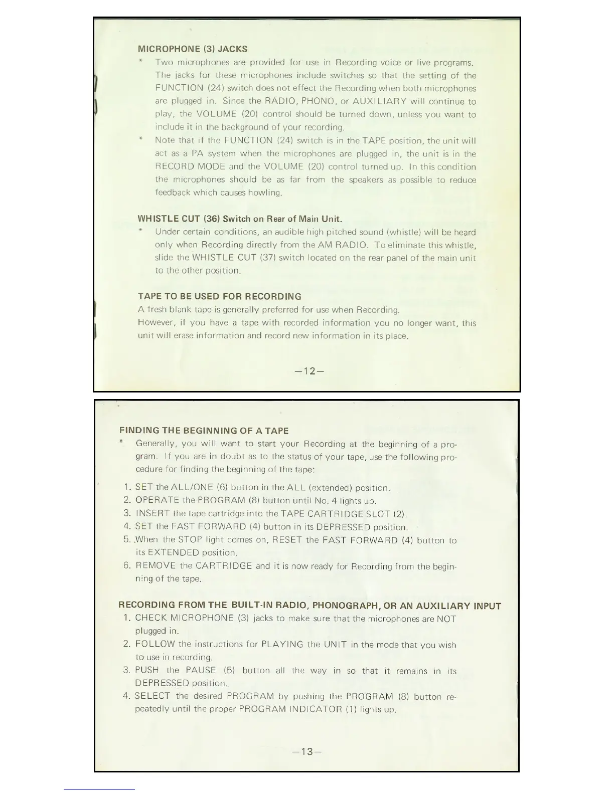 Emerson M2370 - Using the 8 Track Tape Recorder; Finding the Beginning of a Tape; Recording from Built-in Sources