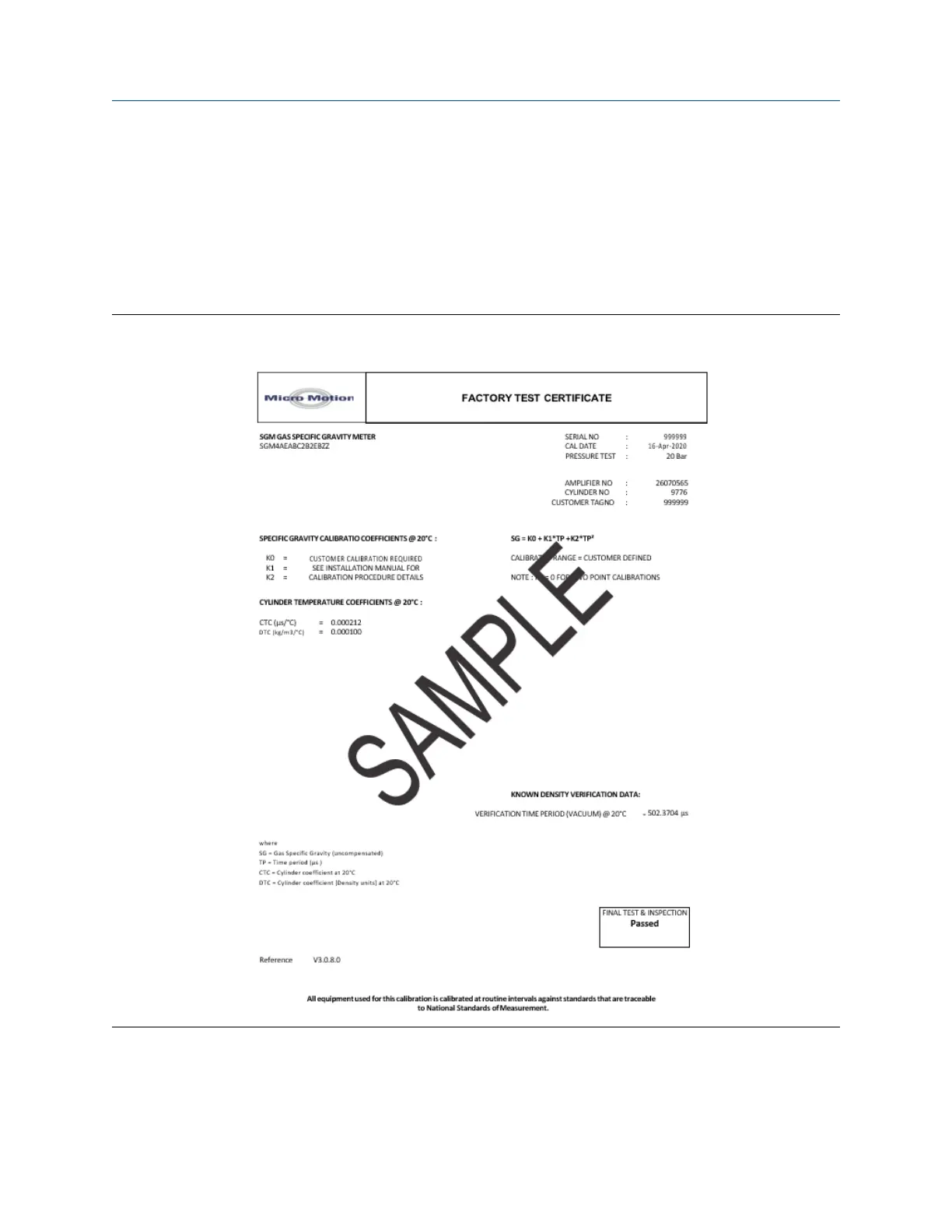 Figure A-1: Sample factory test certificate