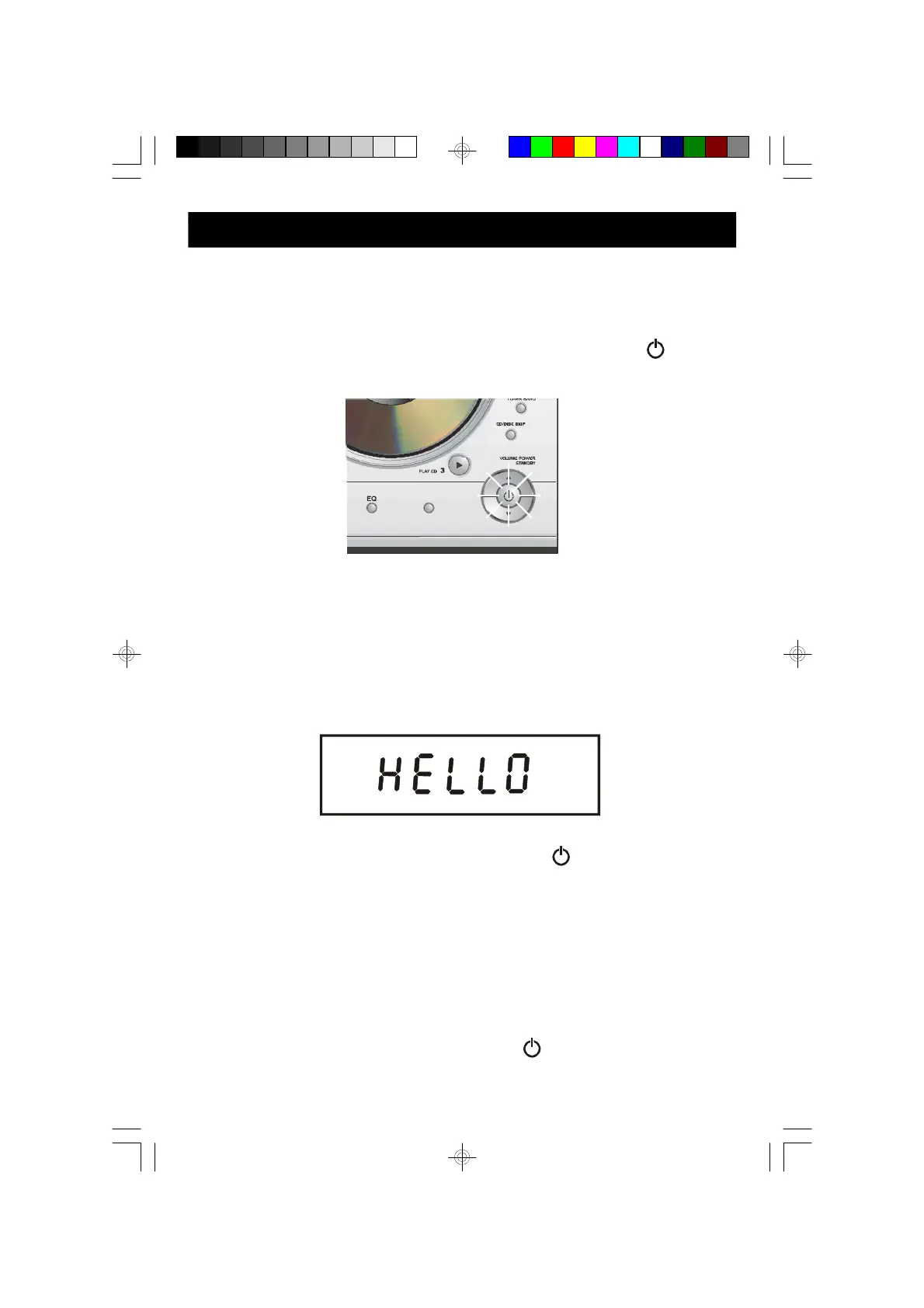 Switch the unit on by pressing the POWER/STANDBY button on the front panel