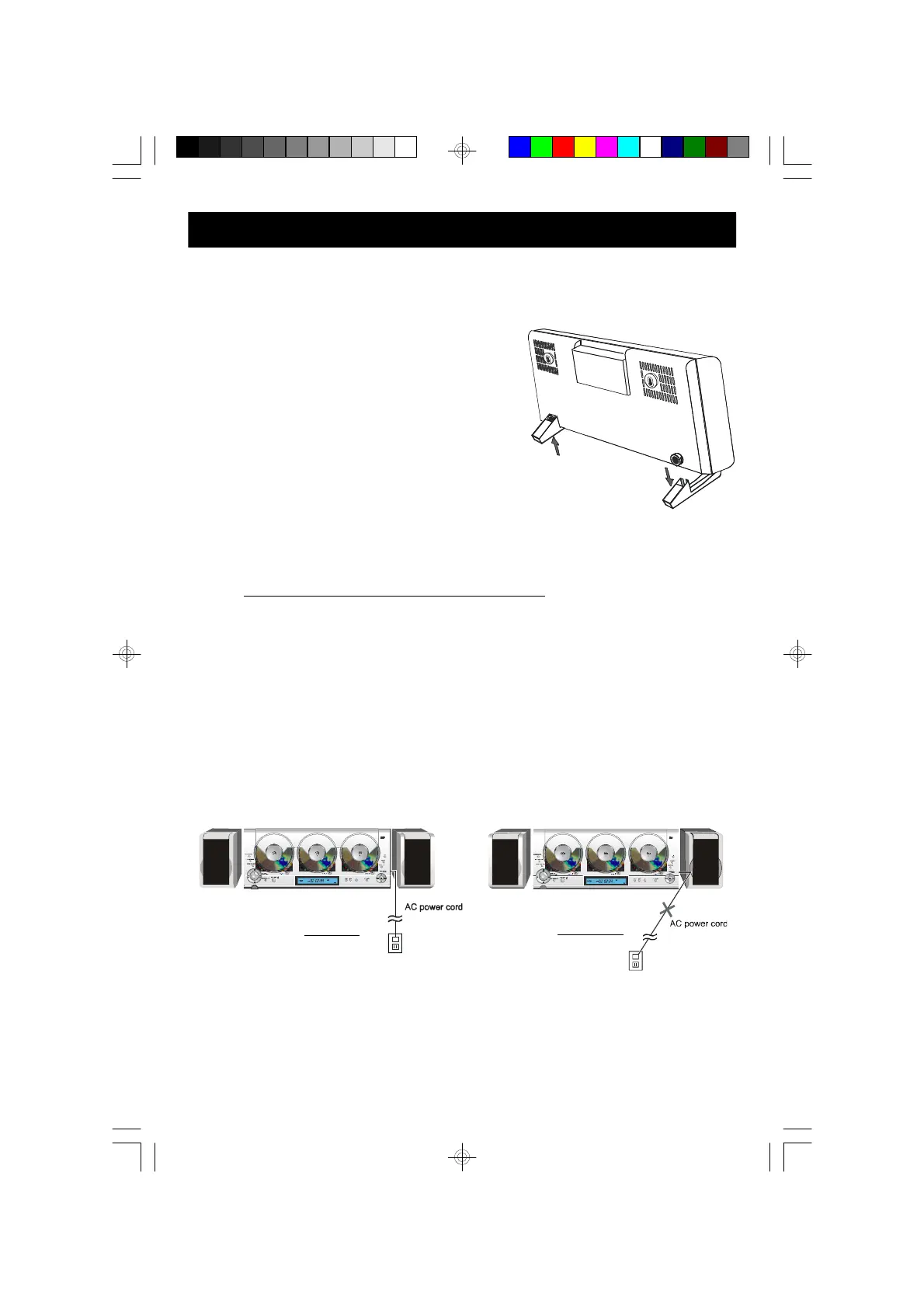 be connected to an AC outlet. The AC power cord of the main unit should be