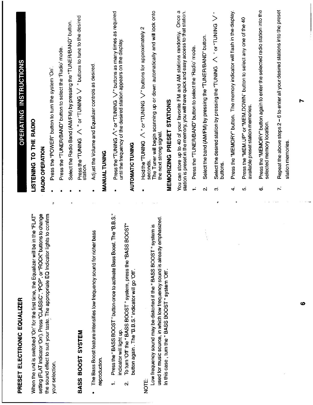 Emerson MS9920TT - Sound Settings and Radio Operation; Preset Electronic Equalizer and Bass Boost; Listening to the Radio