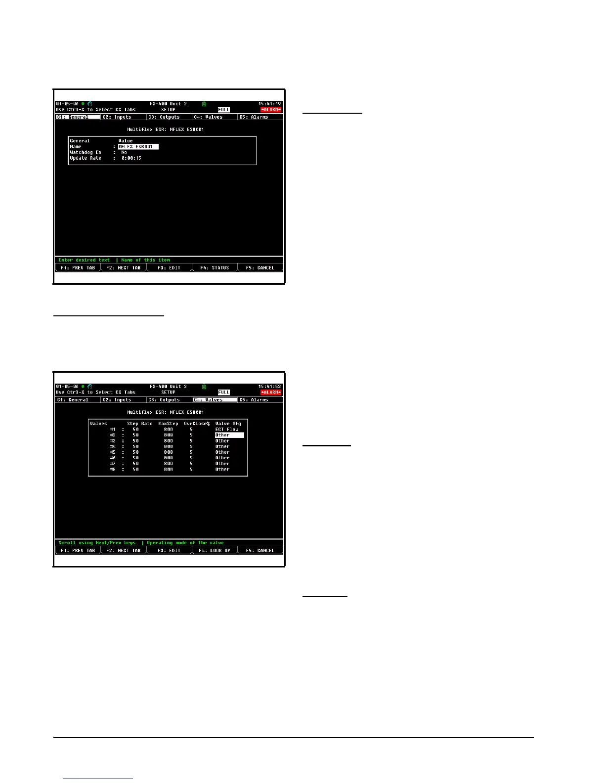 The Valves Setup screen (C4 tab) allows you to
