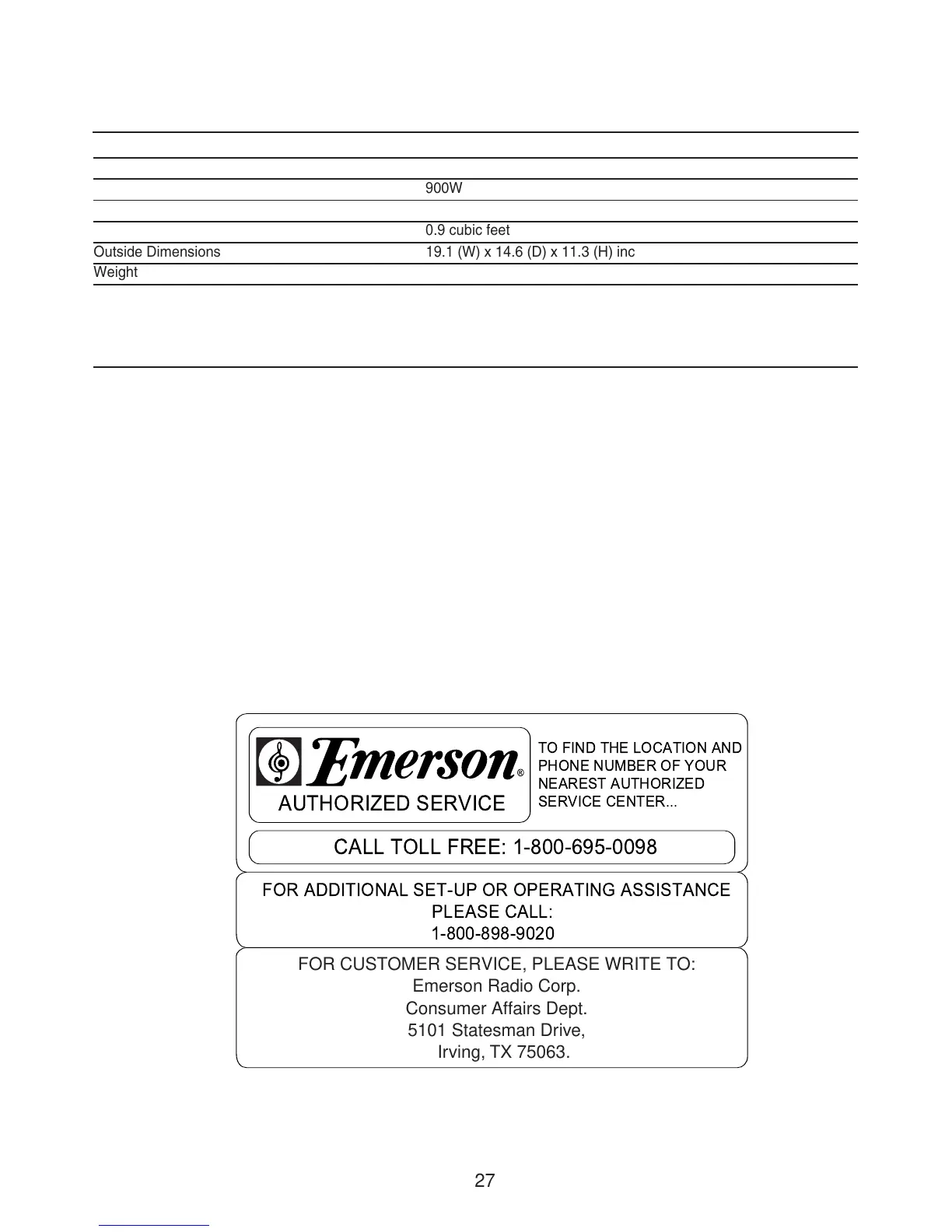 Outside Dimensions 19.1 (W) x 14.6 (D) x 11.3 (H) inches