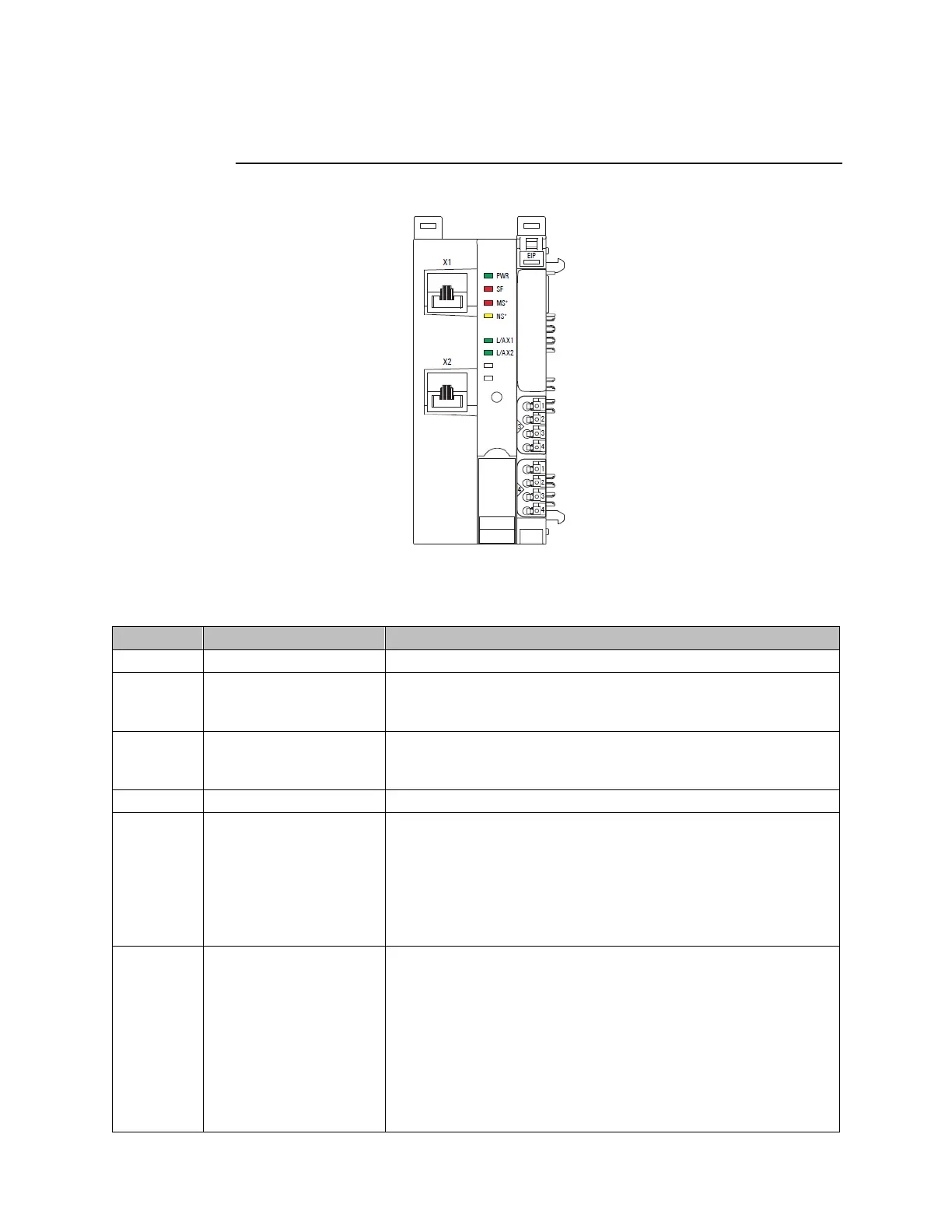 Yellow flashing (1 Hz): valid IP address but no Ether-Net/IP connection