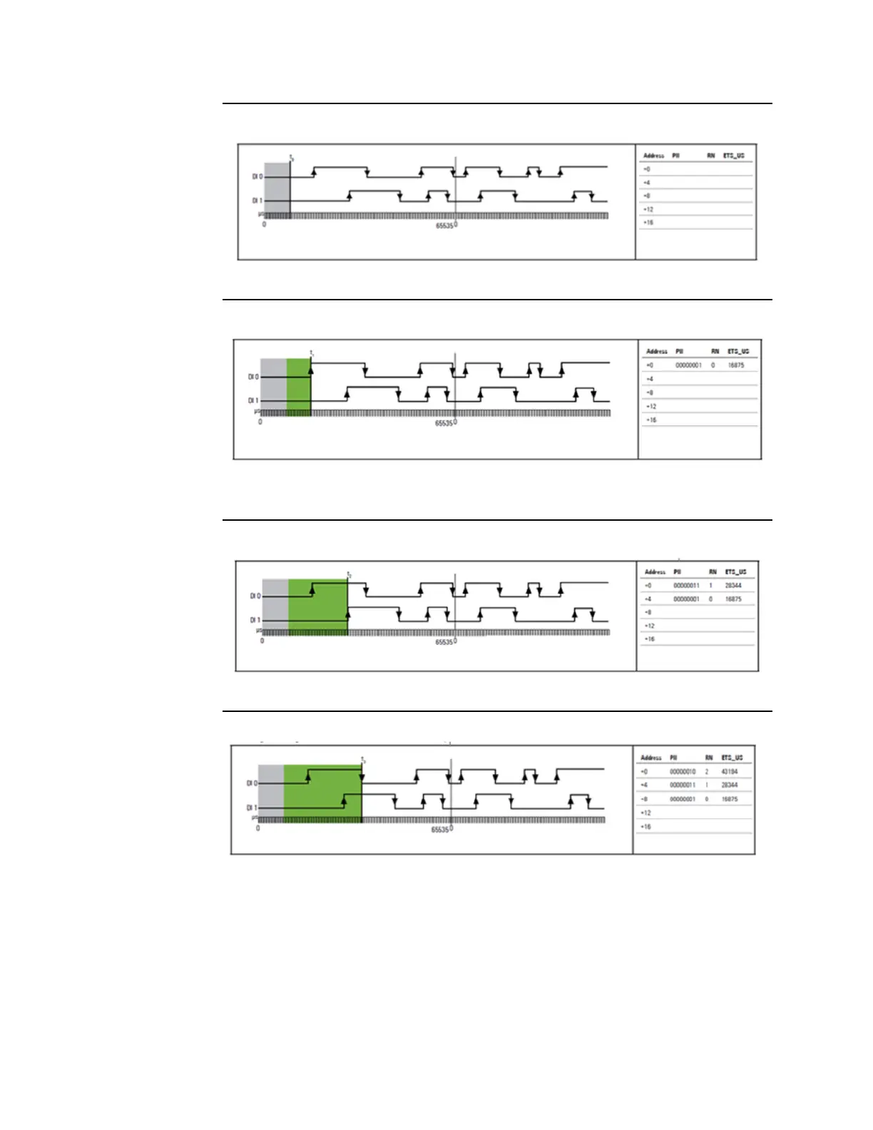 A rising 0-1 edge on DI 1 causes the 2nd ETS entry at address + 0. The 1st ETS entry is