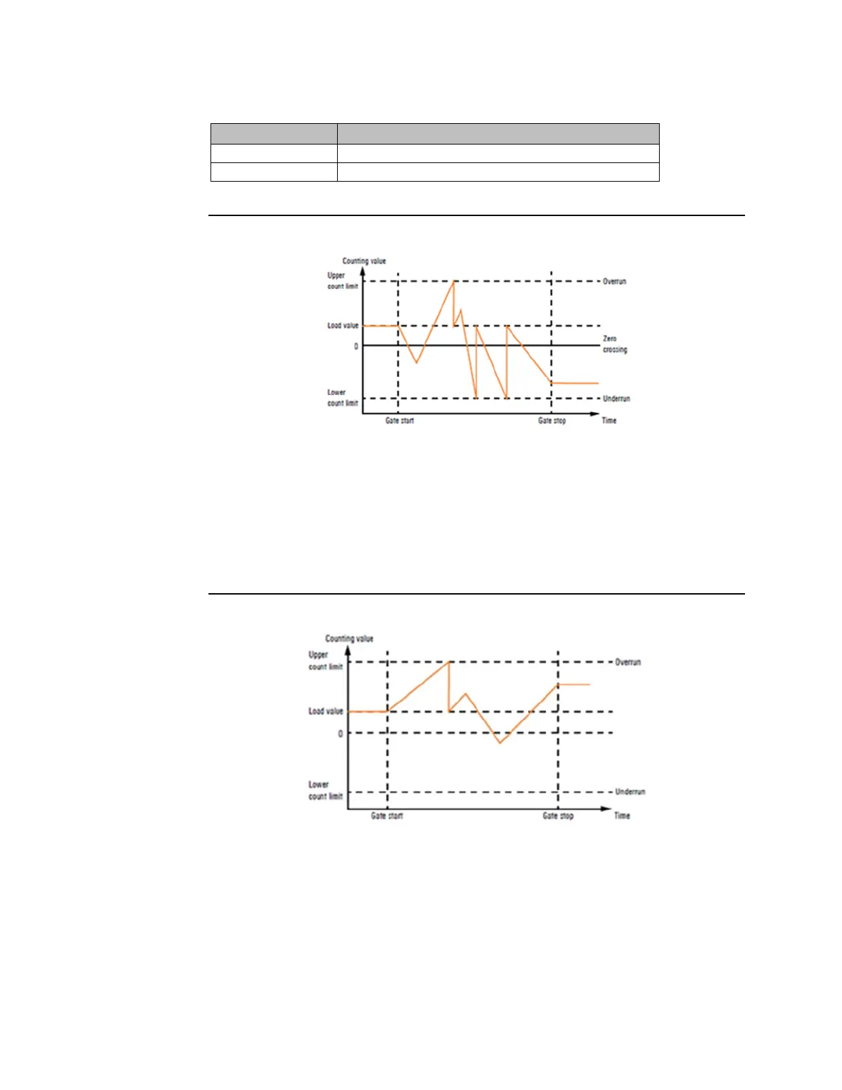 Counting (up or down) starts at the load value, the entire counting range is used.