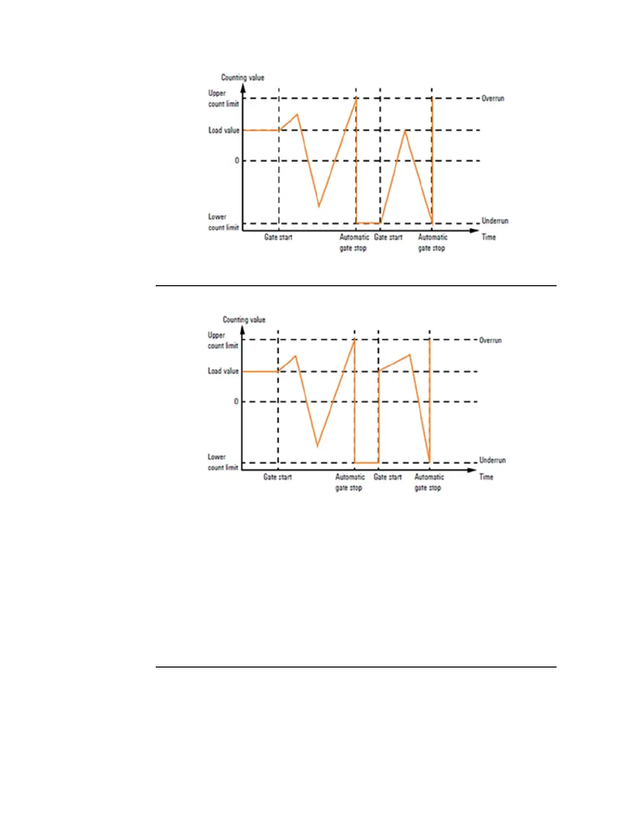 Counting (up and down) starts at the load value, the entire counting range is used.