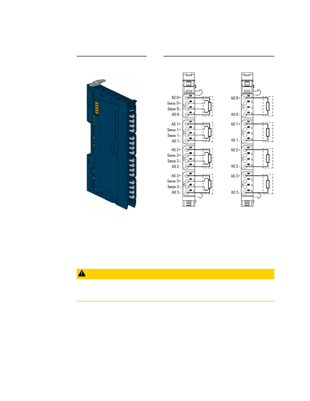 The outputs as well as the sense-lines of the AO modules must not be used as power