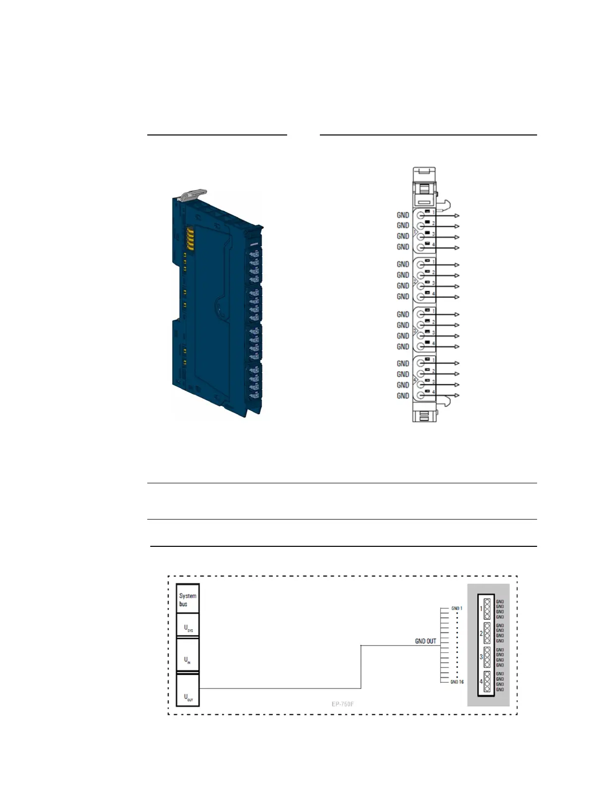 The potential distribution module EP-750F provides 16 connections for ground from the