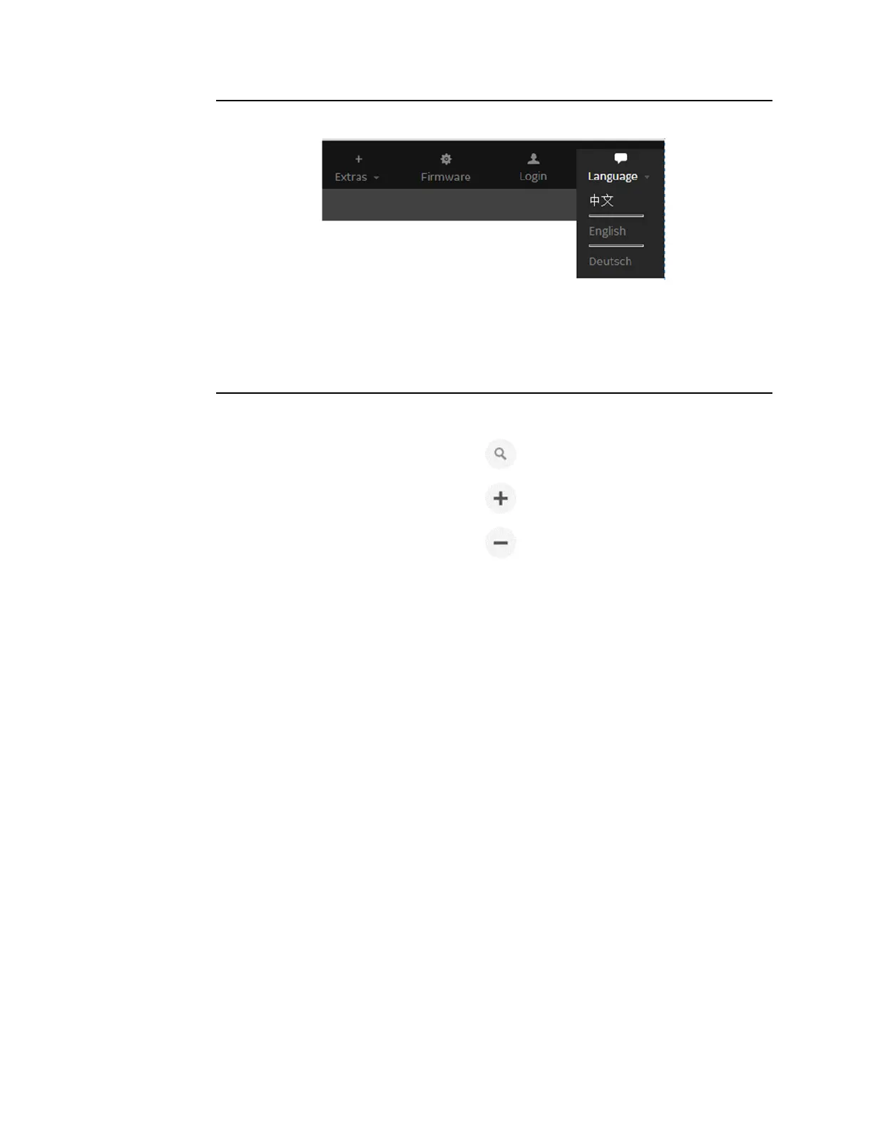 To zoom the view in/out: Click on the magnifying glass symbol to zoom in or out on