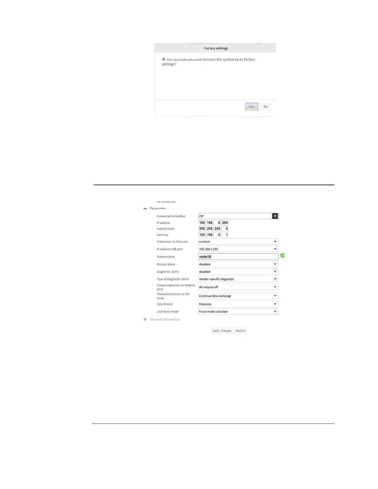 For parameters that can be edited, enter the changes in the entry fields or select alternative
