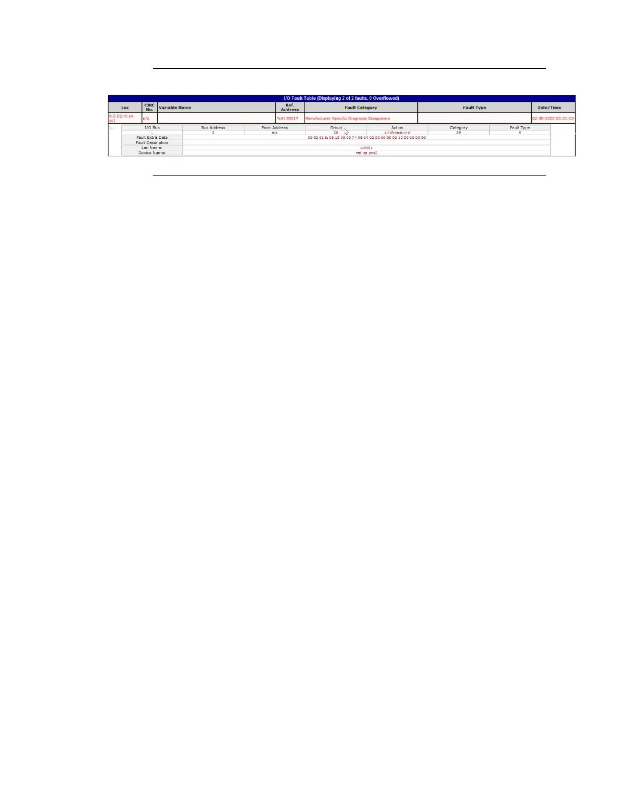 Figure 34: IO Fault table-Line Break PROFINET Fault Disappears