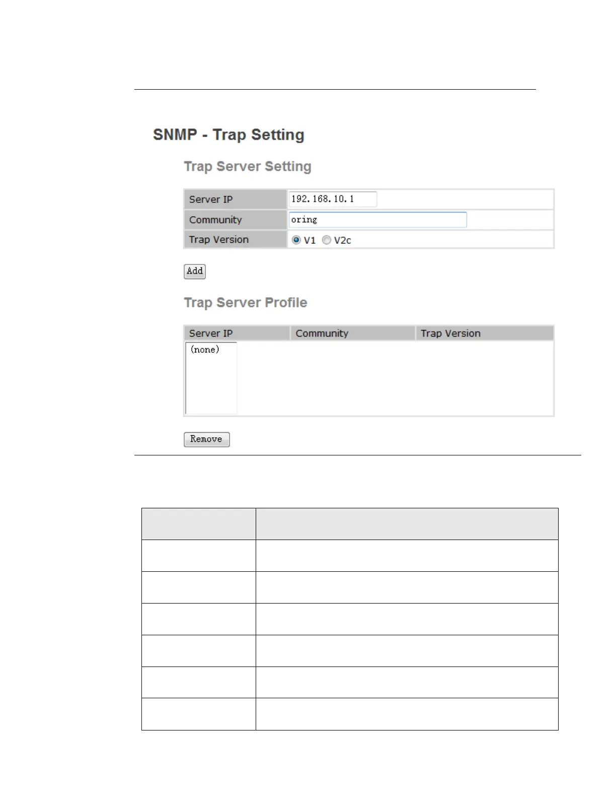 Figure 22: SNMP - Trap Setting