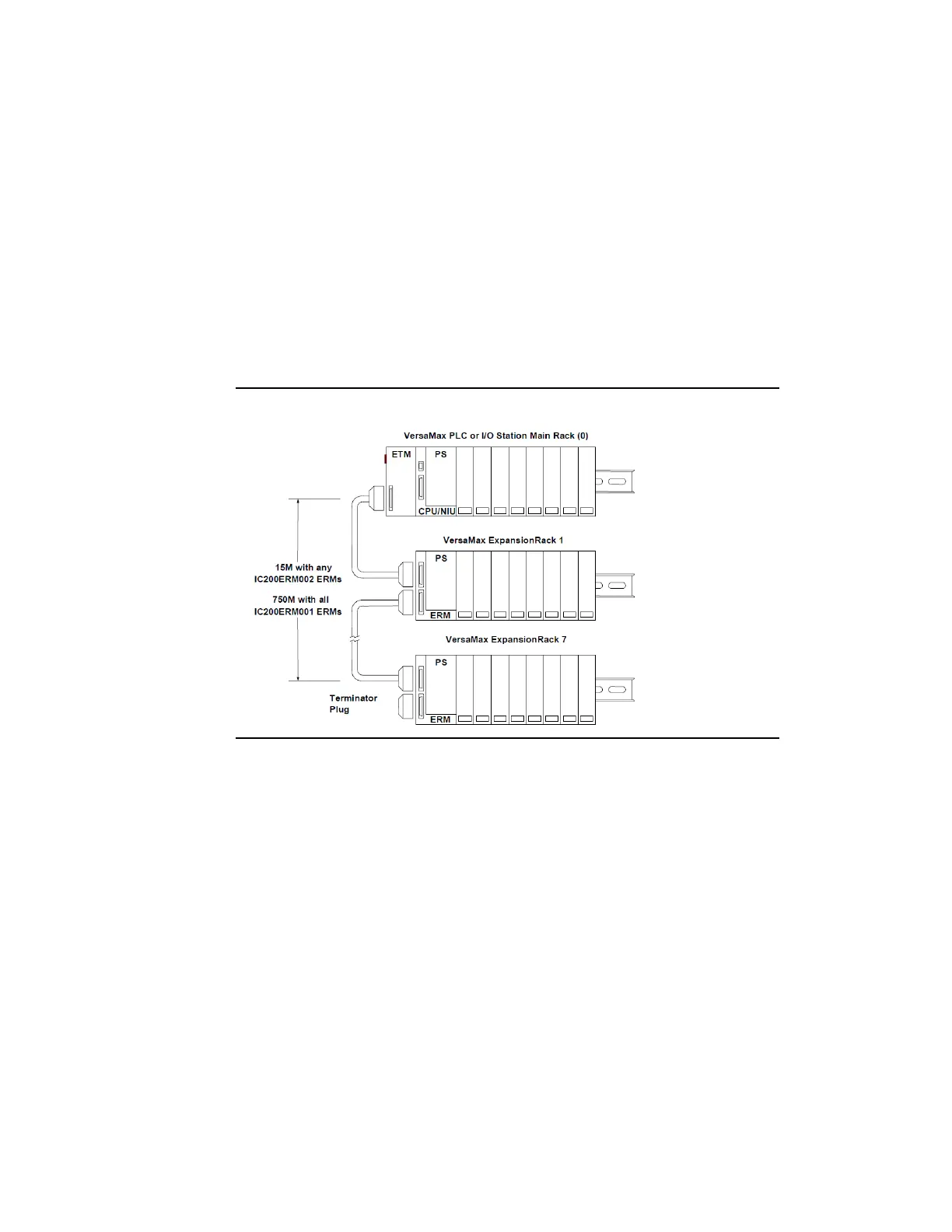 (IC200ERM001), the maximum overall cable length is 750 meters. If the