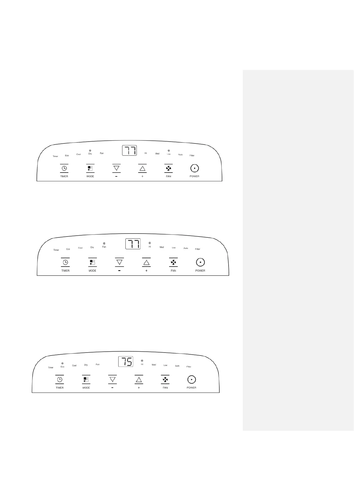 In this mode, you can select fan speed "hi", "med", "low", or "auto".