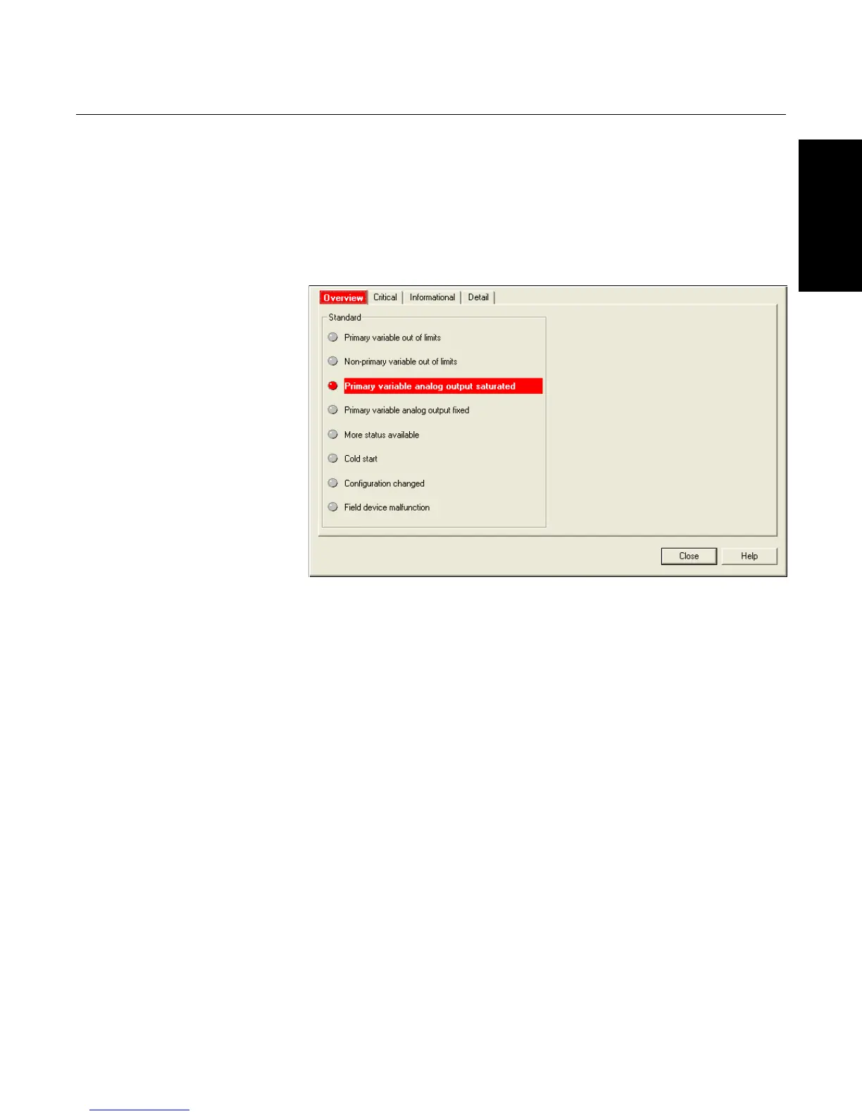 The “Status…” link displays a list of the transmitter errors, alarms, and